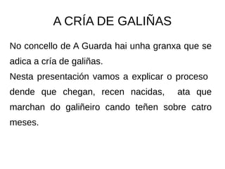 adica a cría de galiñas.