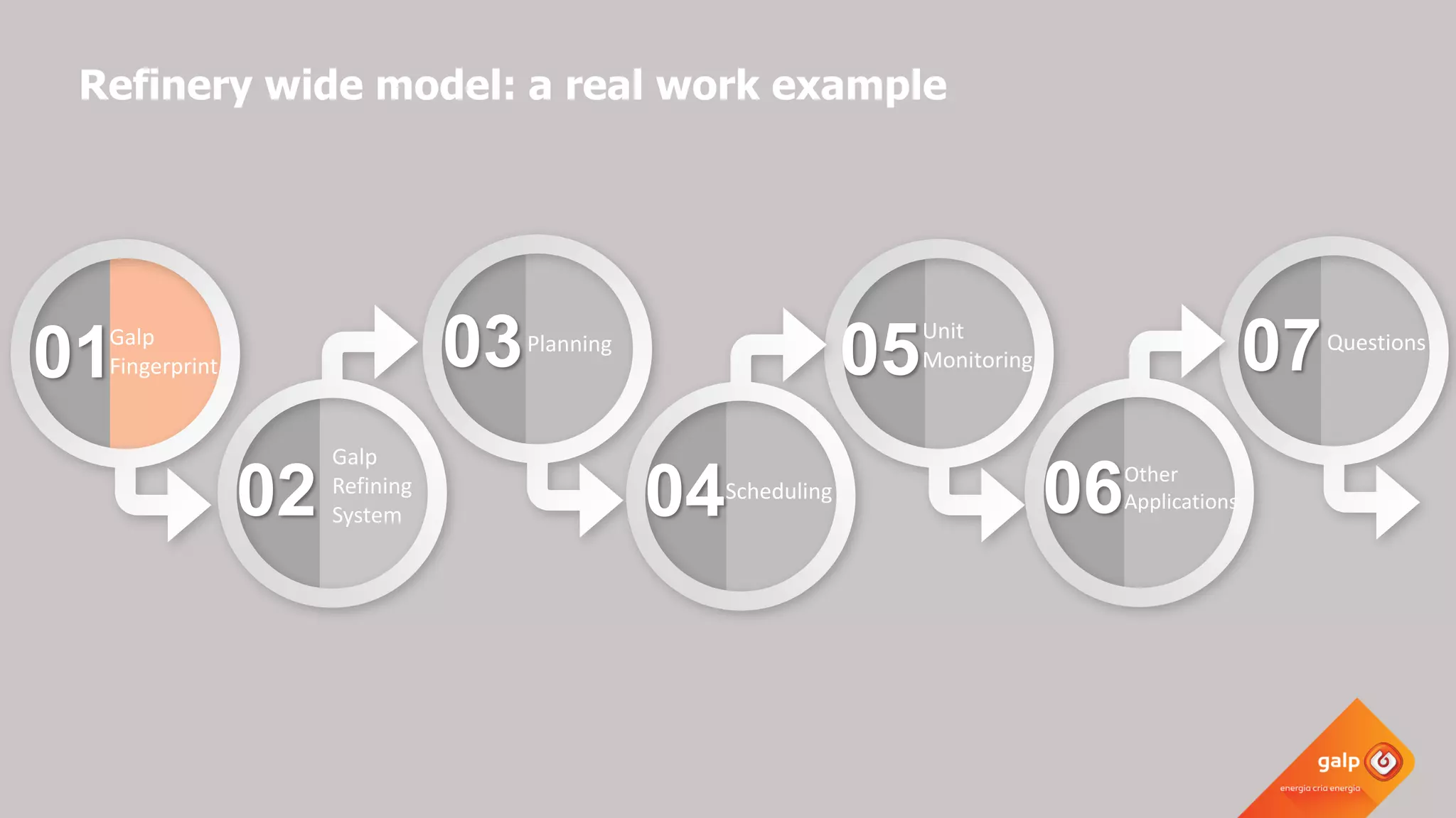 The document discusses Galp's use of a refinery-wide model to optimize operations. It summarizes: