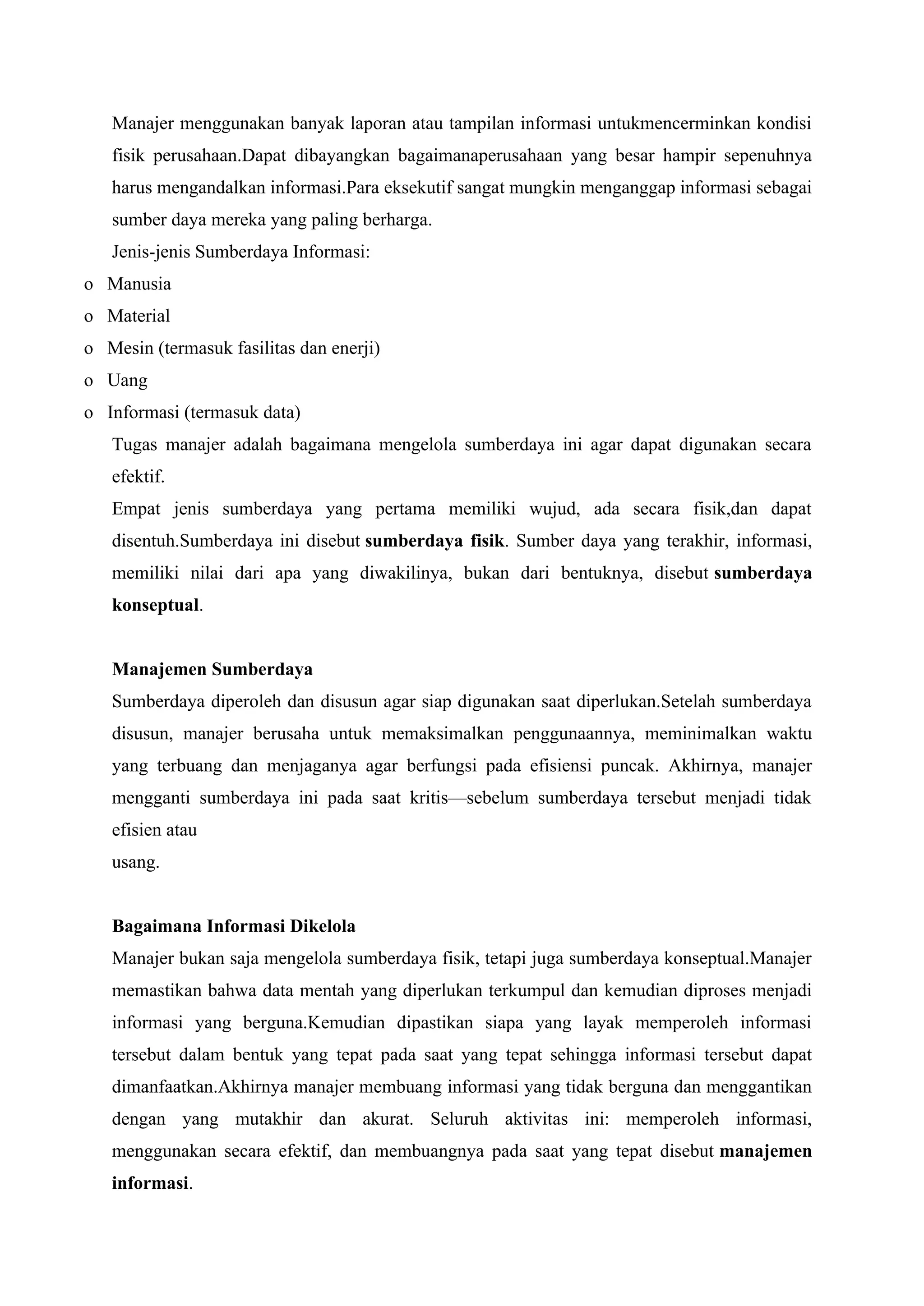 Dokumen ini menjelaskan sistem informasi manajemen (SIM), yang merupakan sistem terpadu untuk menyajikan informasi bagi operasi, manajemen, dan pengambilan keputusan dalam organisasi. SIM berfungsi untuk mengelola sumber daya informasi dan menyediakan akses data yang akurat dan tepat waktu, serta mendukung berbagai tingkat manajemen dalam pengambilan keputusan strategis. Selain itu, dijelaskan berbagai komponen dan sub-sistem SIM, serta hubungan antara SIM dengan disiplin ilmu lain untuk meningkatkan efisiensi dan produktivitas organisasi.