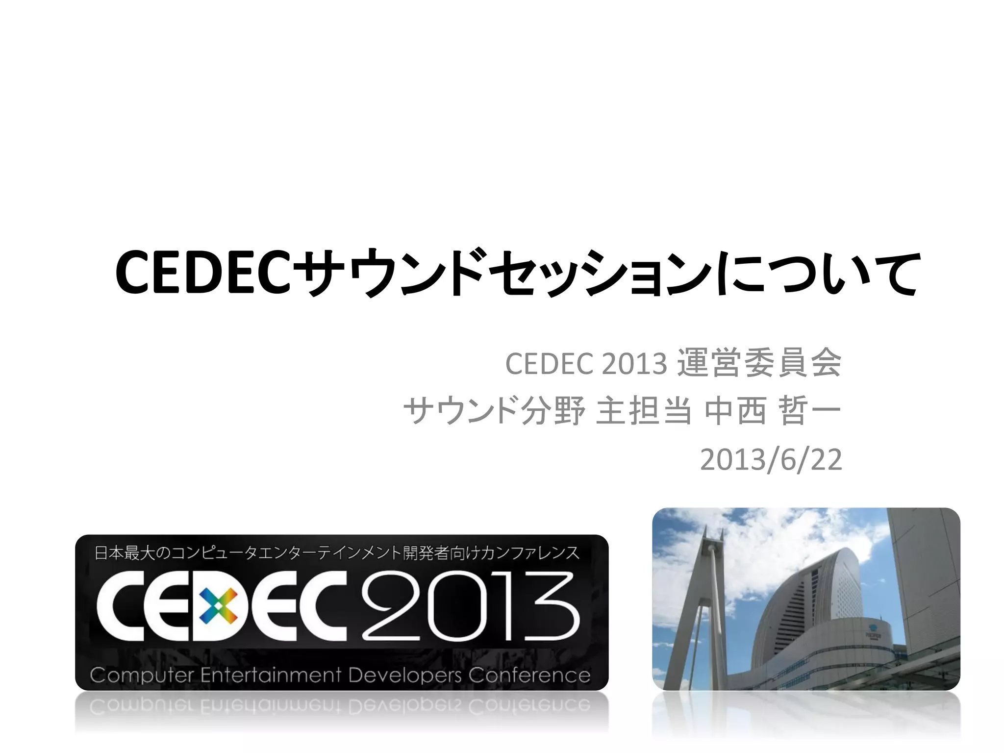 CEDECサウンドセッションについて CEDEC 2013 運営委員会 サウンド分野