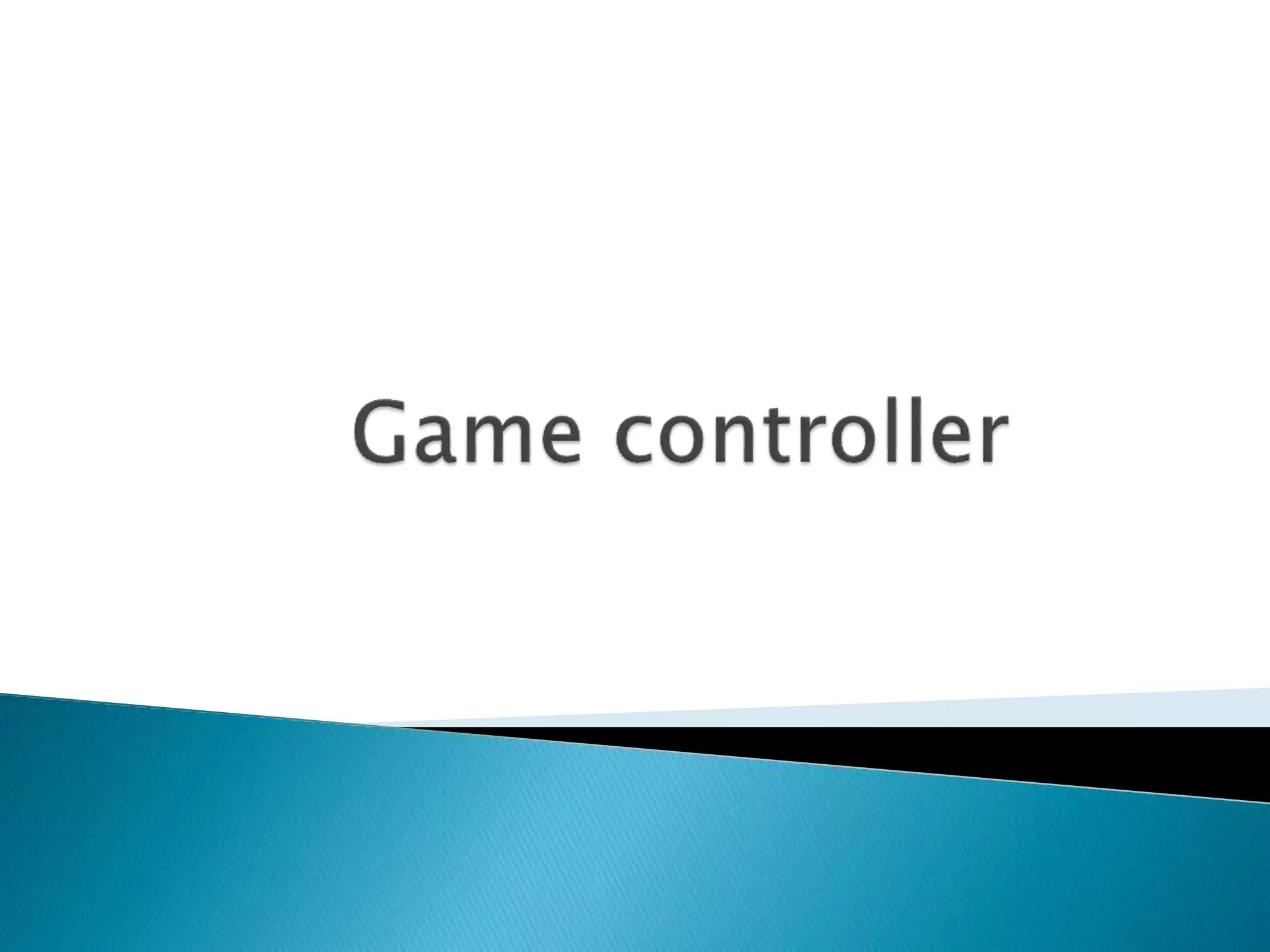 This document discusses different types of game controllers used to control objects in video games. It describes controllers like keyboards, mice, game pads, and joysticks. Game pads are the main input device for video game consoles, consisting of buttons and a directional controller. Joysticks are another popular controller type and are used to control vehicles or machines in games. They contain elements like a stick, base, buttons, and directional switches.