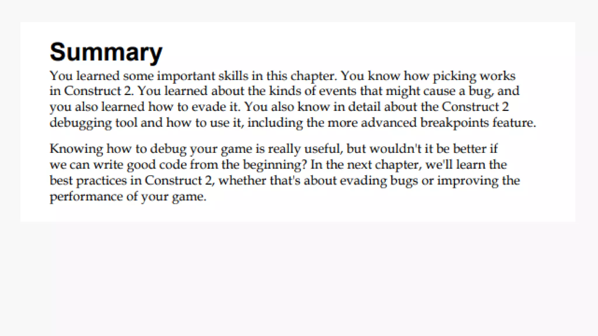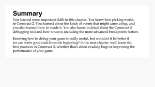 The document provides instructions for Yuri Rahmanto to study chapter 4 on debugging games in the book "Learning Construct 2" by S. Aryadi. It lists the author and book title as well as page numbers ranging from 161 to 172 that are relevant to debugging games using Construct 2. The reader is thanked and specifically asked to study the debugging chapter.