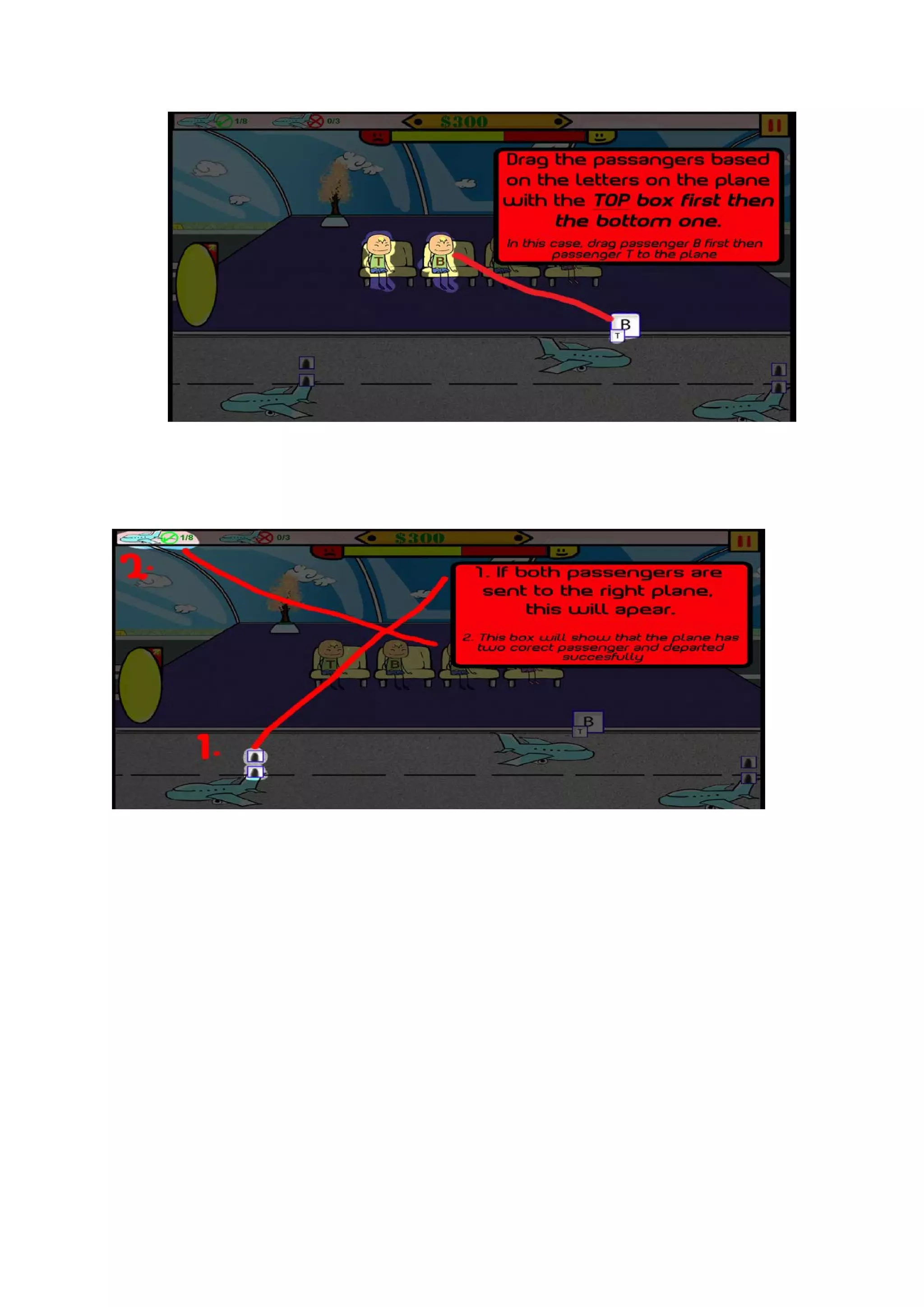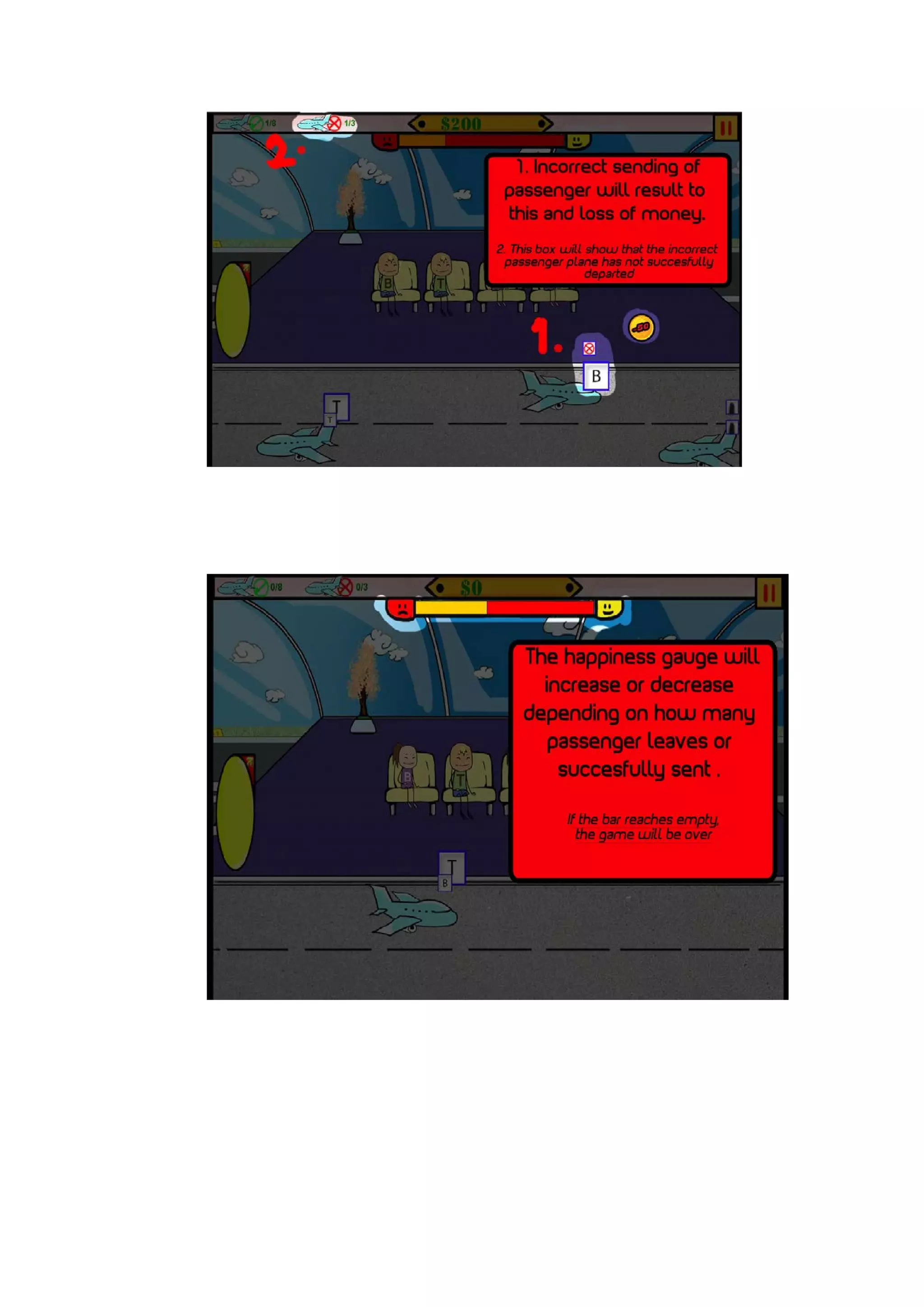This document outlines the design of the game Destination Rush. It includes sections on the design history, game overview, gameplay and mechanics, story/setting, management, and playtesting results. The game involves dragging and dropping passengers onto planes matching their designated destinations within time limits. Iterative playtesting resulted in changes like adjusting prices, mechanics from buttons to drag-and-drop, cuter art style, and balancing objectives. Players must transport passengers efficiently while managing upgrades, mystery boxes, and fees to progress through levels.