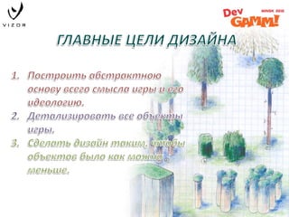 Документ описывает процесс создания графических элементов для игры, включая сюжетные фоны, персонажей и спецэффекты. Упоминается важность детализации объектов и проработки игрового флоу для лучшего взаимодействия с игроком. Также акцентируется внимание на определении целей для каждой новой функции.