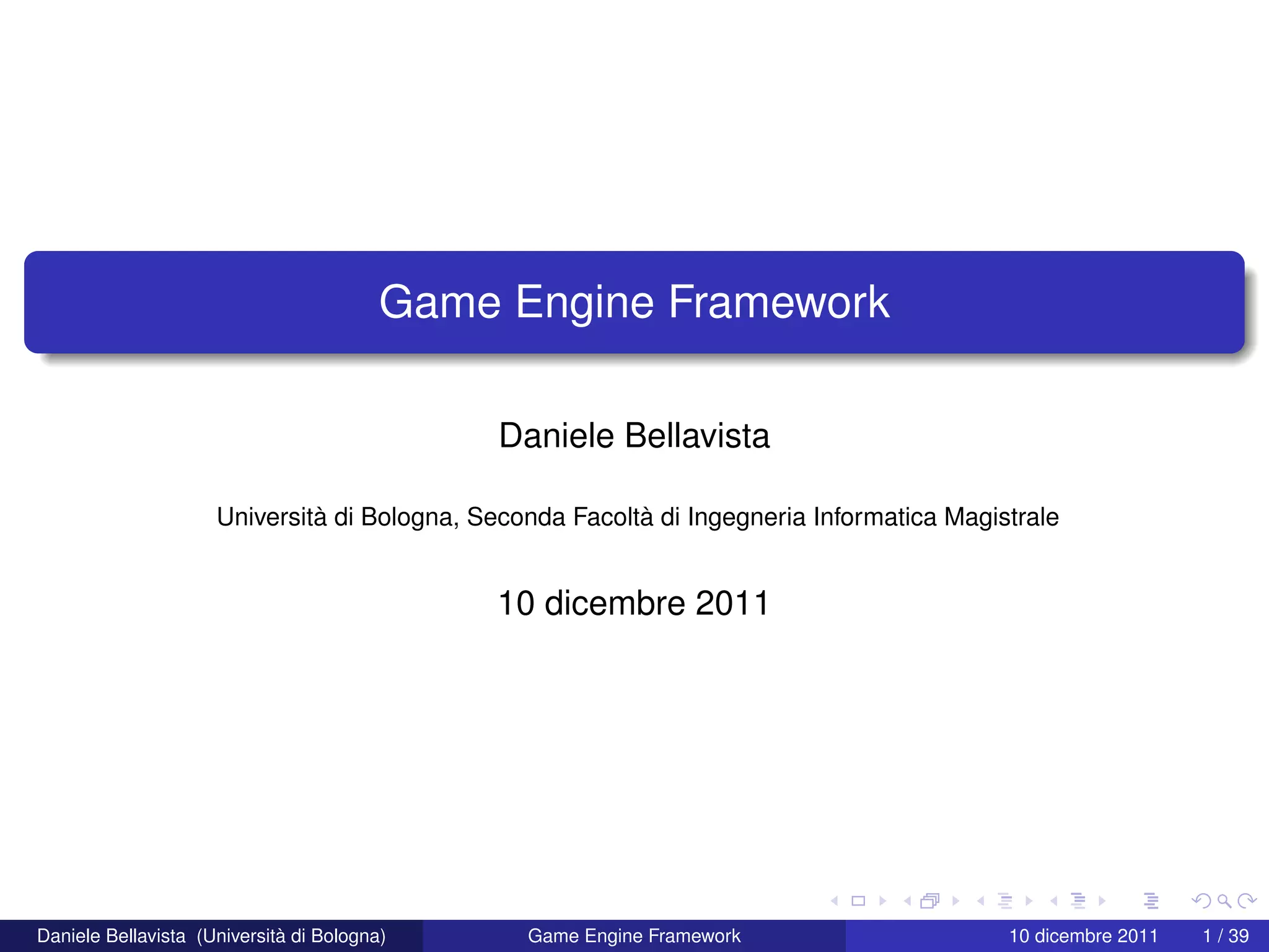 Il documento presenta una panoramica dettagliata dei componenti e delle funzionalità di un game engine, evidenziando l'importanza della separazione delle responsabilità tra game logic e graphic logic. Vengono discussi vari aspetti come la gestione delle scene, la simulazione fisica, la parallelizzazione e l'intelligenza artificiale, con riferimenti a tecnologie specifiche come idtech4 e idtech5. Infine, si sottolinea la necessità di ottimizzazioni per garantire prestazioni adeguate nei videogiochi in tempo reale.