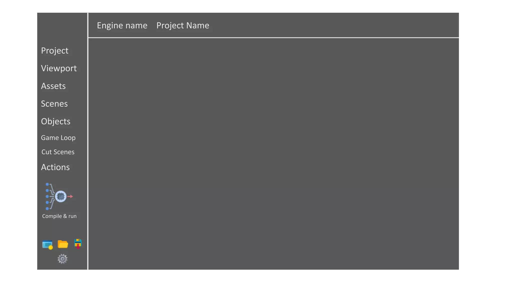 This document outlines the core components of a game project including assets, scenes, objects, game loop, viewport, and engine name. It describes asset types like sprites, sound effects, background music, maps, and tilesets that can be created and managed. It also mentions cut scenes and actions that can be compiled and run as part of the project.