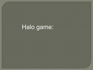 The document provides instructions for playing the Halo multiplayer game. It explains that the main menu allows players to join a local area network multiplayer game, create an online multiplayer game to play with friends, or start a single player game where the goal is to reach the last level. It also describes how the profile menu lets players choose controls, character, and game settings before creating a new profile or editing an existing one. Settings can be adjusted for names, colors, controls, audio, video, and network connectivity.