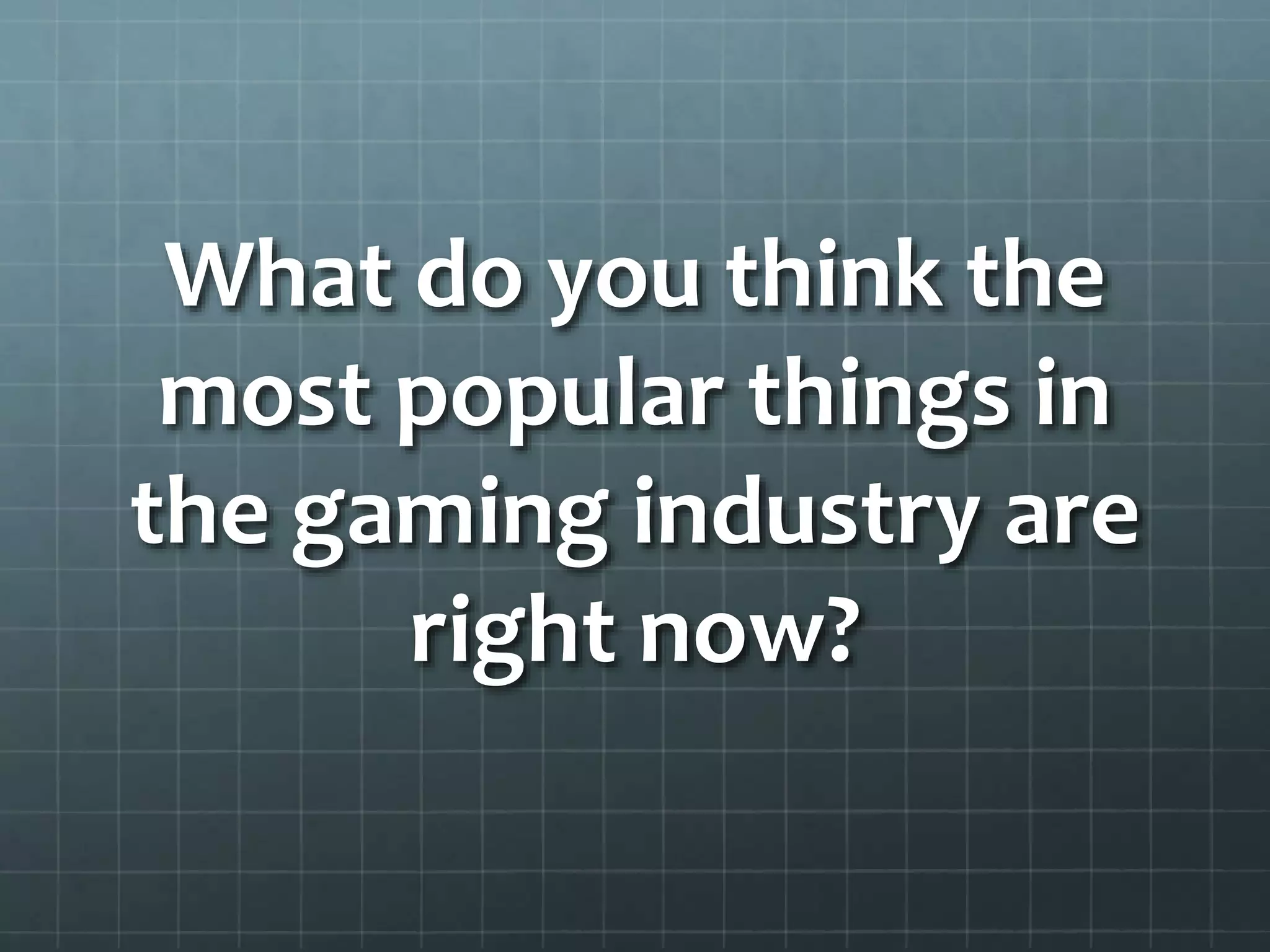 The document discusses current market trends in the gaming industry. Some of the key trends highlighted include the introduction of new gaming consoles fueling growth, the increasing popularity of online and mobile gaming, the rise of free-to-play and cloud gaming models, the success of franchises and sequels, and growing investment in virtual and augmented reality technologies. Independent games and exclusives are also strategies being used by companies to keep users engaged during periods between major releases.