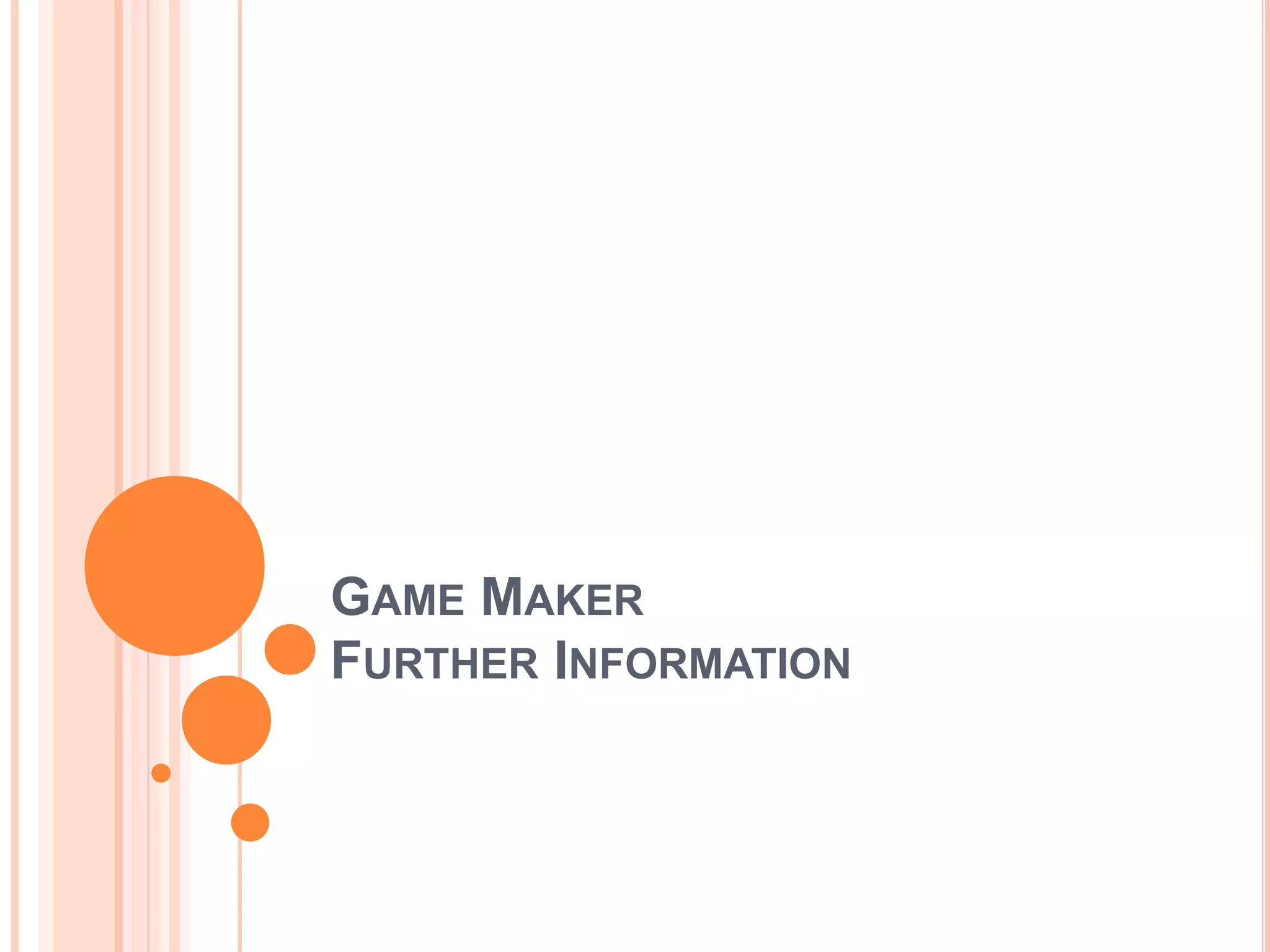 The document provides information about various aspects of creating games using Game Maker including: