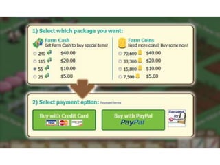 2) Free-to-play games make money through in-app purchases rather than upfront costs, with popular options including cosmetic items, power-ups, and removing restrictions that encourage continued gameplay.