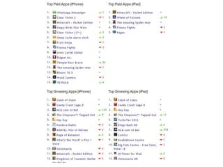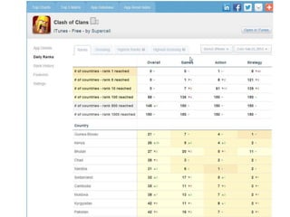 3) Highly successful games like Puzzle and Dragons and Clash of Clans generate millions in daily revenue through engaging core gameplay loops and social features that encourage in-app purchases without negatively impacting the gameplay experience.