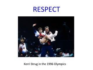 This document targets middle class urban males aged 15-30 of all ethnicities for two Olympic videos showing acts of respect, courage and caring. The videos profile Kerri Strug in the 1996 Olympics and Derek Redmond in the 1992 Olympics, who both demonstrated resilience and determination in the face of adversity.