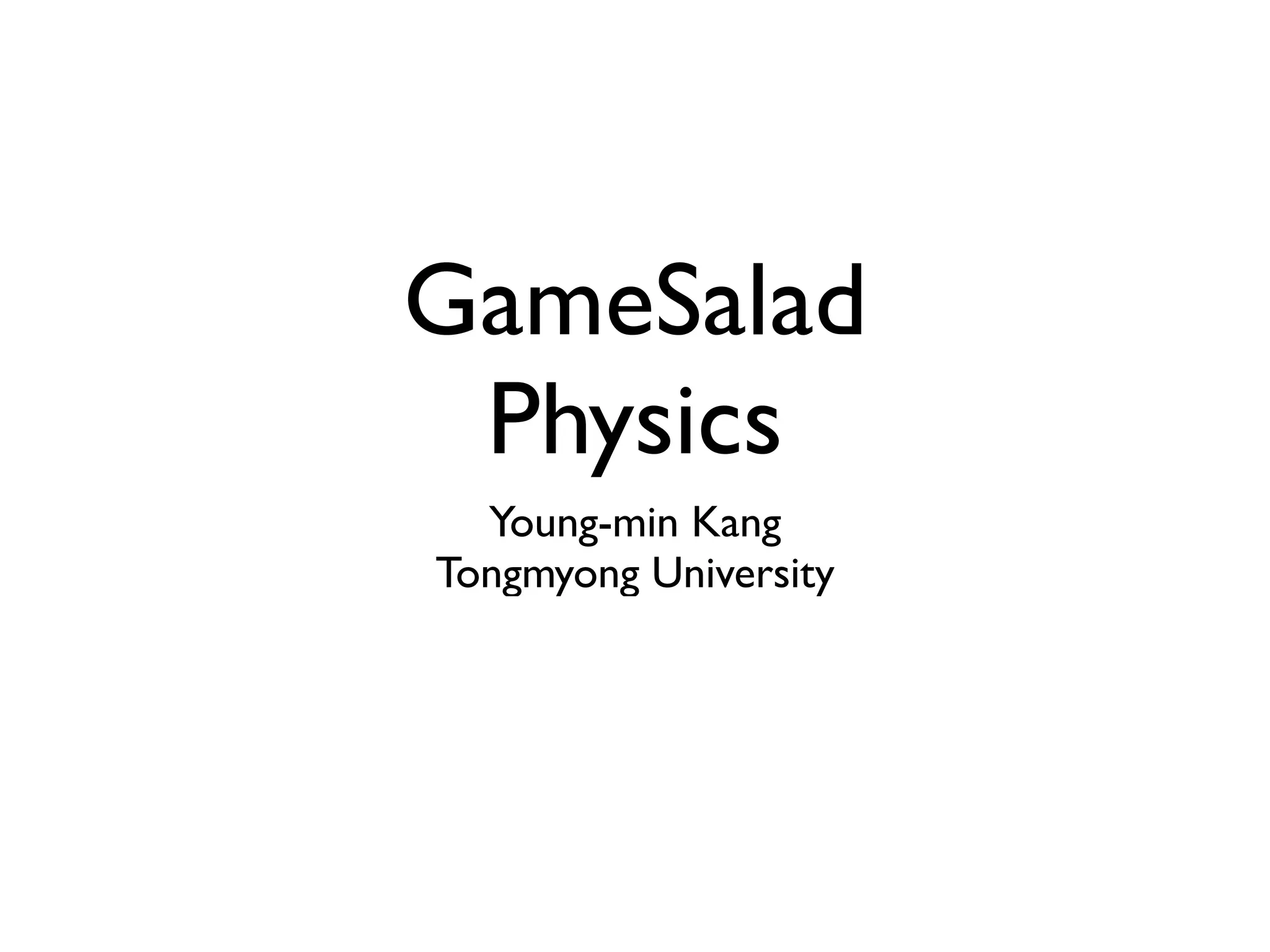This document describes the development of 8 physics test scenes in GameSalad. Scene 1 demonstrates gravity and spawning balls. Scene 2 adds ball collision. Scene 3 introduces bounciness controlled by touch input. Scene 4 simulates elasticity. Scene 5 experiments with friction. Scene 6 attracts planets to a touch point "sun". Scene 7 tests drag. Scene 8 simulates a rope using "fake" joint dynamics between linked "rivets".