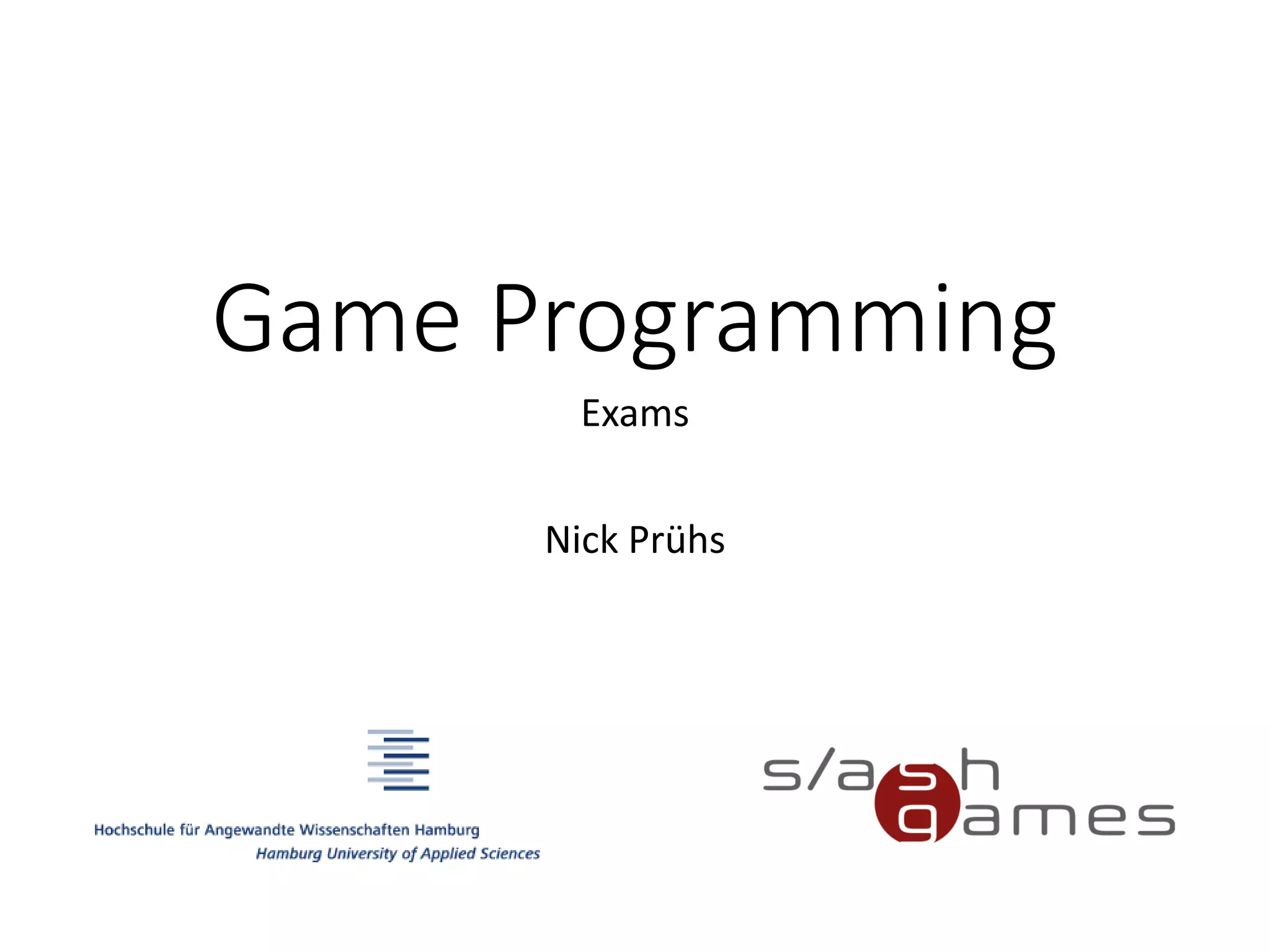 The document outlines the exam requirements and guidelines for game programming, focusing on creating a reusable code library in a chosen programming language. Students will be evaluated on code quality, reusability, documentation, and project structure, with additional points for unit tests and static analysis. All work must be submitted with proper public API documentation, and earlier commits will be considered for assessment.