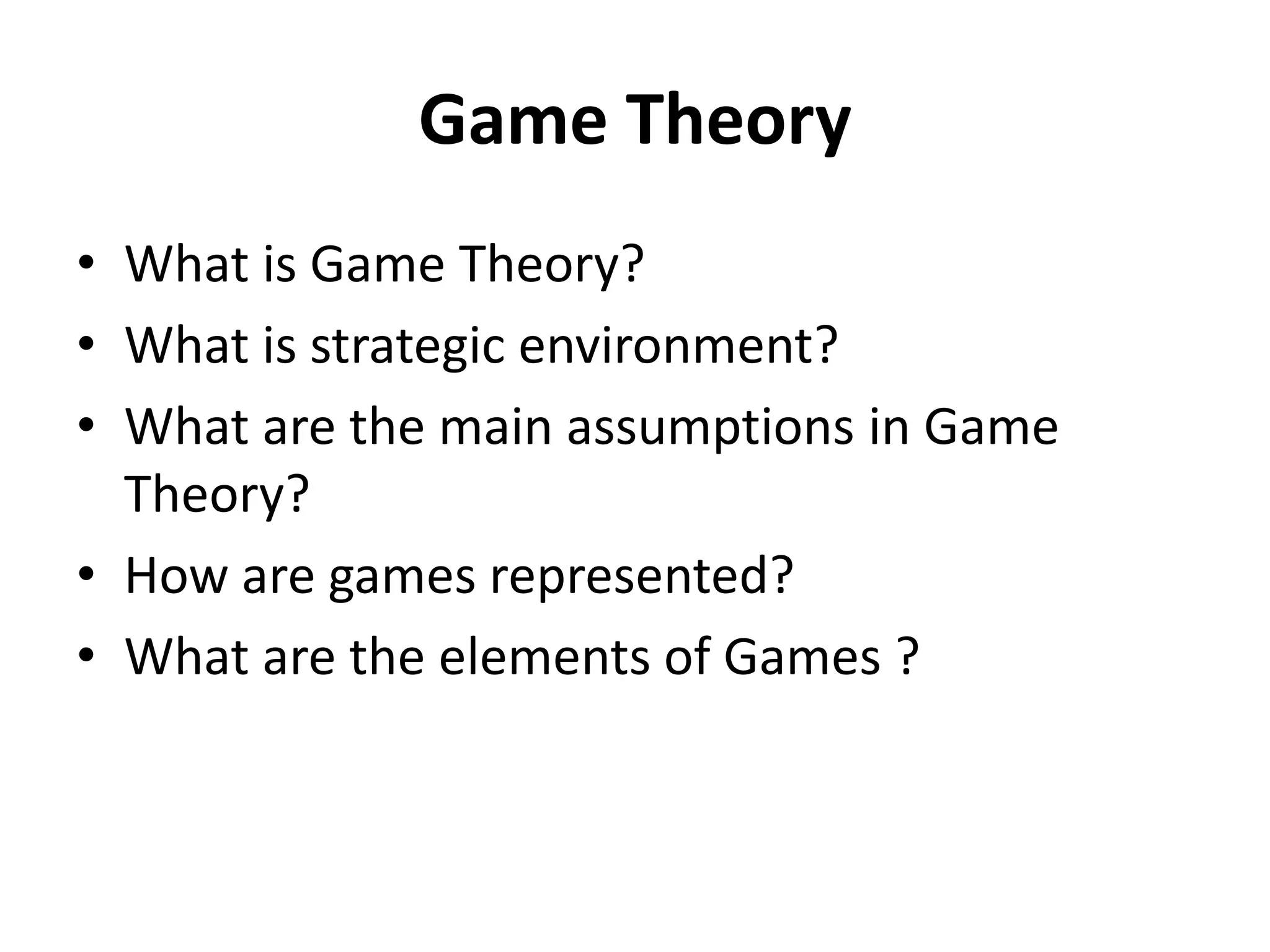 Game theory is used to model strategic decision making between players. It assumes players are rational and make decisions to maximize their payoffs. Games are represented using matrices that show players' strategies and corresponding payoffs. Key concepts include Nash equilibrium, where each player's strategy is the best response to other players' strategies so no player wants to deviate unilaterally. Examples include the Prisoner's Dilemma and coordination games.