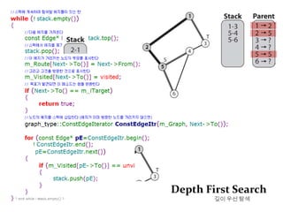 Dijkstra Algorithm A*BreadthFirst Search너비 우선 탐색시작노드에서 인접한 각 노드들를 검사하고목표노드를 찾을때까지 시작 노드에서 - 하나의 에지만큼 떨어진 노드 - 두개의 에지만큼 떨어진 노드 - 세개의 에지만큼 떨어진 노드 등을 탐색한다.즉 이렇게 찾은 경로는 가장 적은 에지를 포함하도록 보장된다.너비 탐색 AlgorithmQueue FIFO