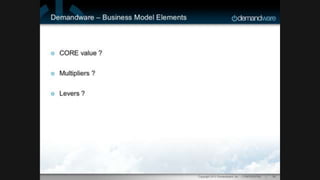 The document outlines strategies for creating game-changing business models for startups, focusing on components such as value proposition, market strategies, and leveraging innovation. It highlights successful examples like Google and Symantec, showcasing how to disrupt markets and co-create value through open-source collaborations. The emphasis is on understanding core values, effective funding strategies, and maintaining a repeatable and scalable business model.