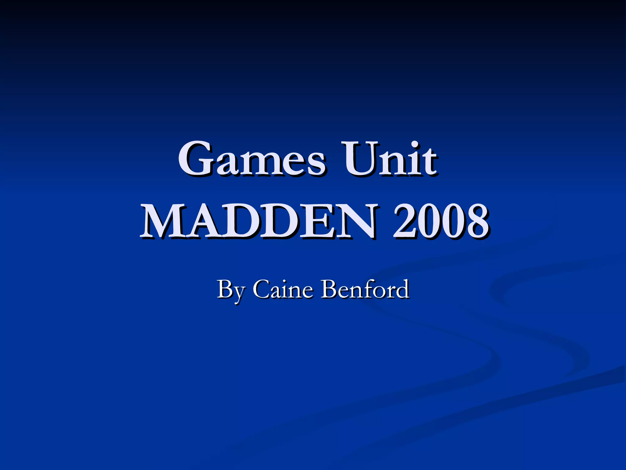 The document is a student's work plan and review of Madden NFL 2008 for a games unit. The student chose to write a walkthrough guide for the game's Superstar mode and post it online. They describe creating a running back character and playing through the preseason and playoffs to win the Super Bowl with the New England Patriots. The student rates different aspects of the game on a scale from 1 to 4. Overall, they thought the game captured the action of football well.