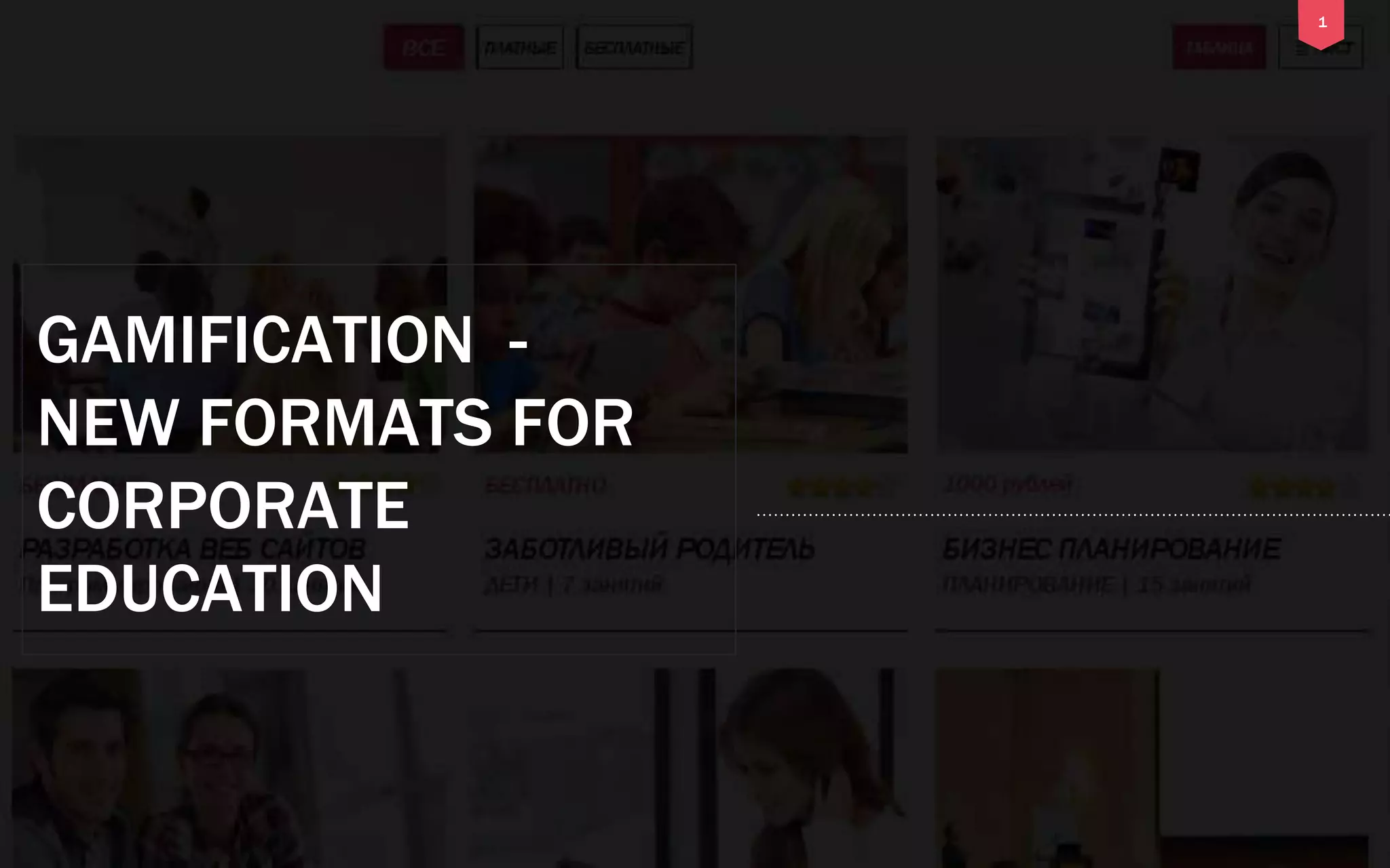This document discusses how gamification can be used for corporate education. It notes that most major brands already use gamification to educate staff and clients. Gamification applies game mechanics to non-game processes to motivate learning. The document outlines the types of game mechanics that can be used, such as narratives, objectives, competitions, rewards, and social sharing. It argues that gamification can increase engagement, motivation, and staff performance. The document proposes an online education platform that uses gamification techniques like badges and leaderboards to make learning fun and encourage completion of courses.