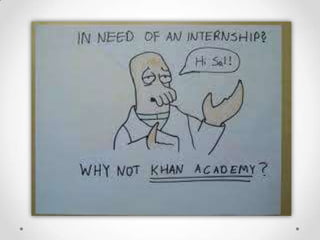 The document discusses the rise of games as a form of interactive entertainment due to cultural and technological shifts, highlighting their impact on skills development and social collaboration. It emphasizes the concept of gamification, applying game mechanics to enhance engagement in various fields, particularly education, as demonstrated by real-world examples like Ananth Pai's classroom initiative. The Khan Academy is also mentioned as a platform leveraging game dynamics to motivate and improve student learning through a free, accessible educational model.