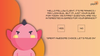 The document presents a pitch for incorporating games into brand marketing, highlighting that 66% of the Saudi population engages with mobile games daily, particularly among women. It outlines the process for developing games tailored to specific brand needs, including strategy integration and promotional activities. The document encourages potential clients to collaborate and provides contact information for further inquiries.