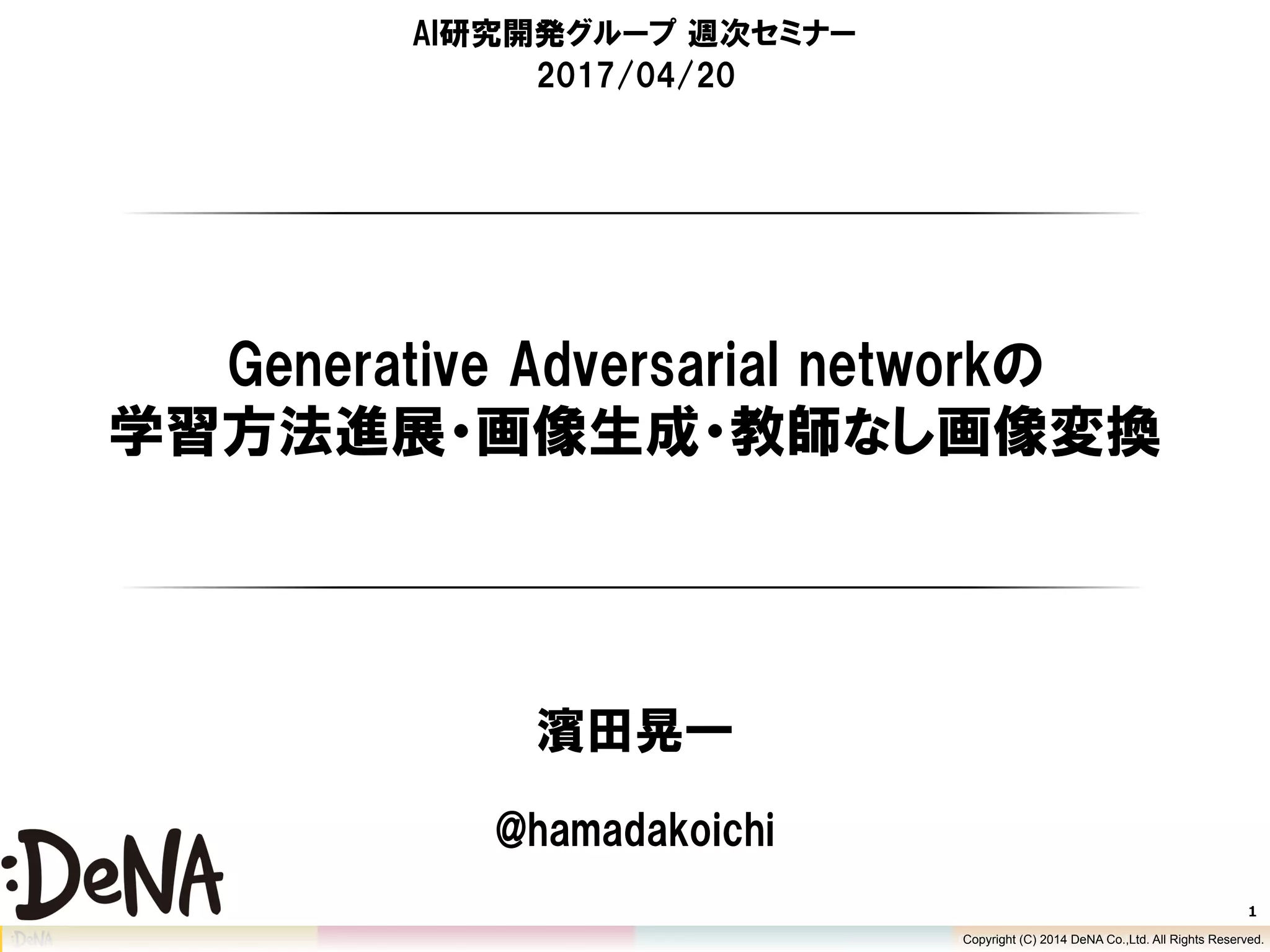 ・GANの学習方法進展、画像生成、教師なし画像変換、を紹介。