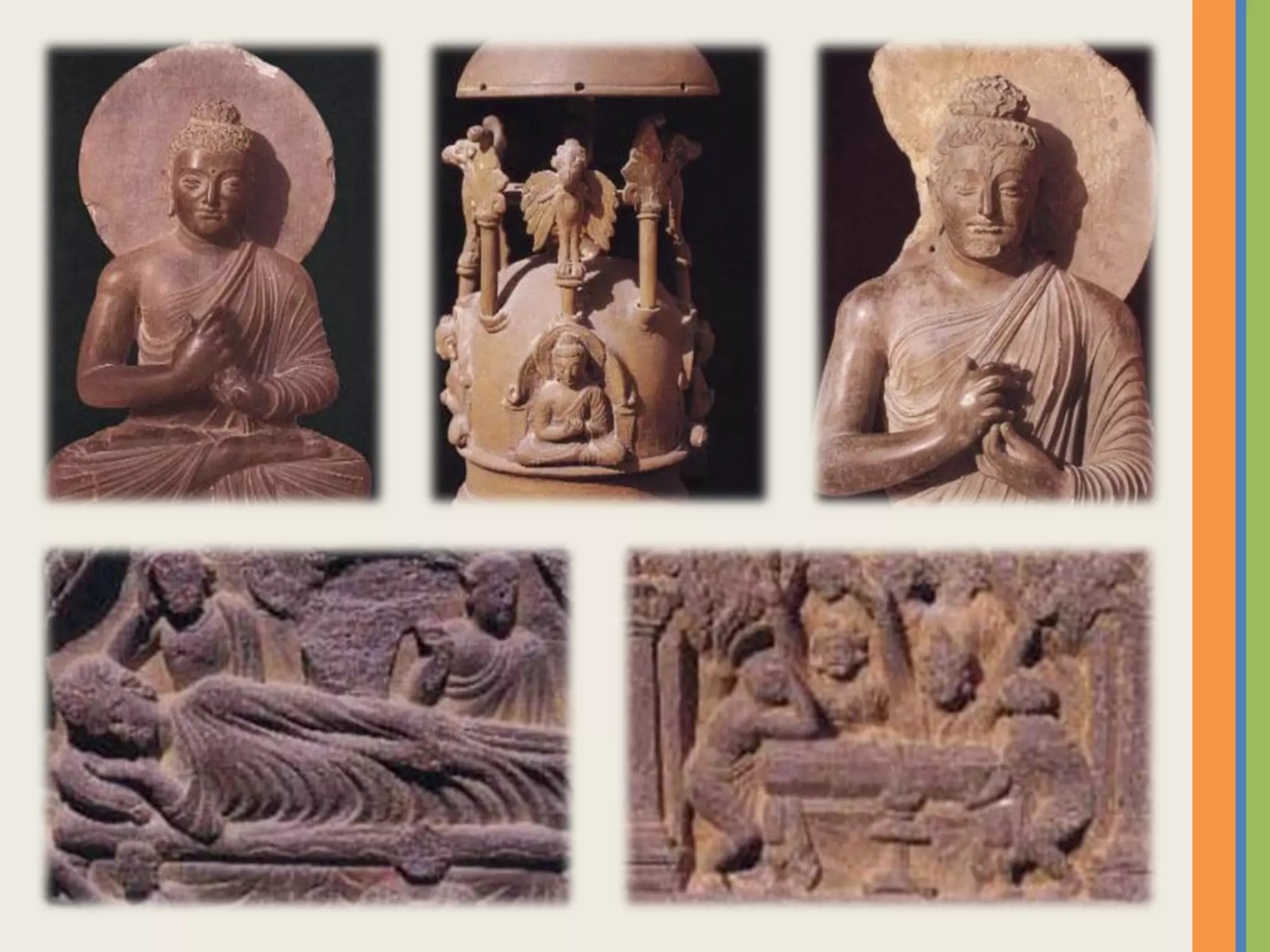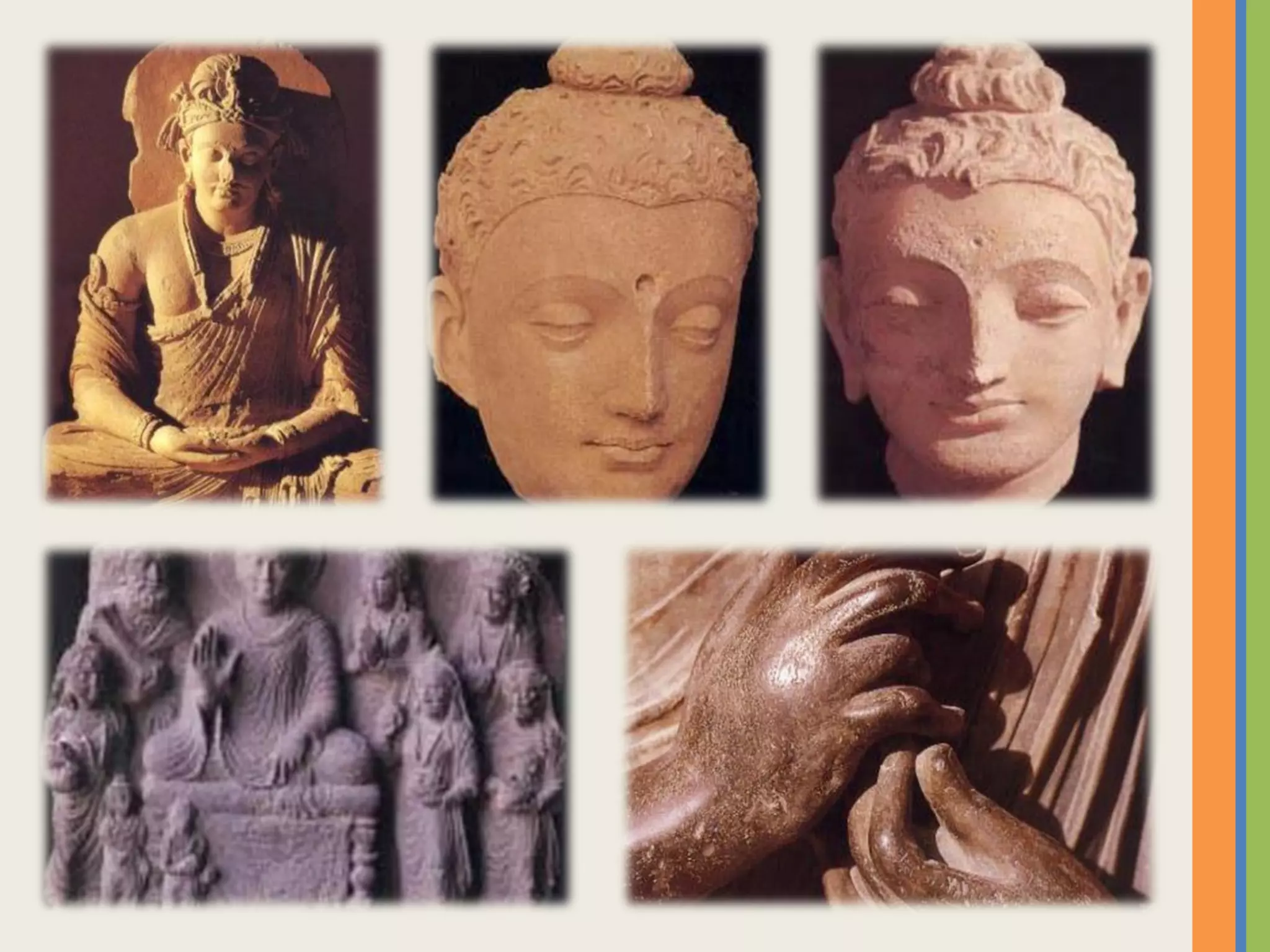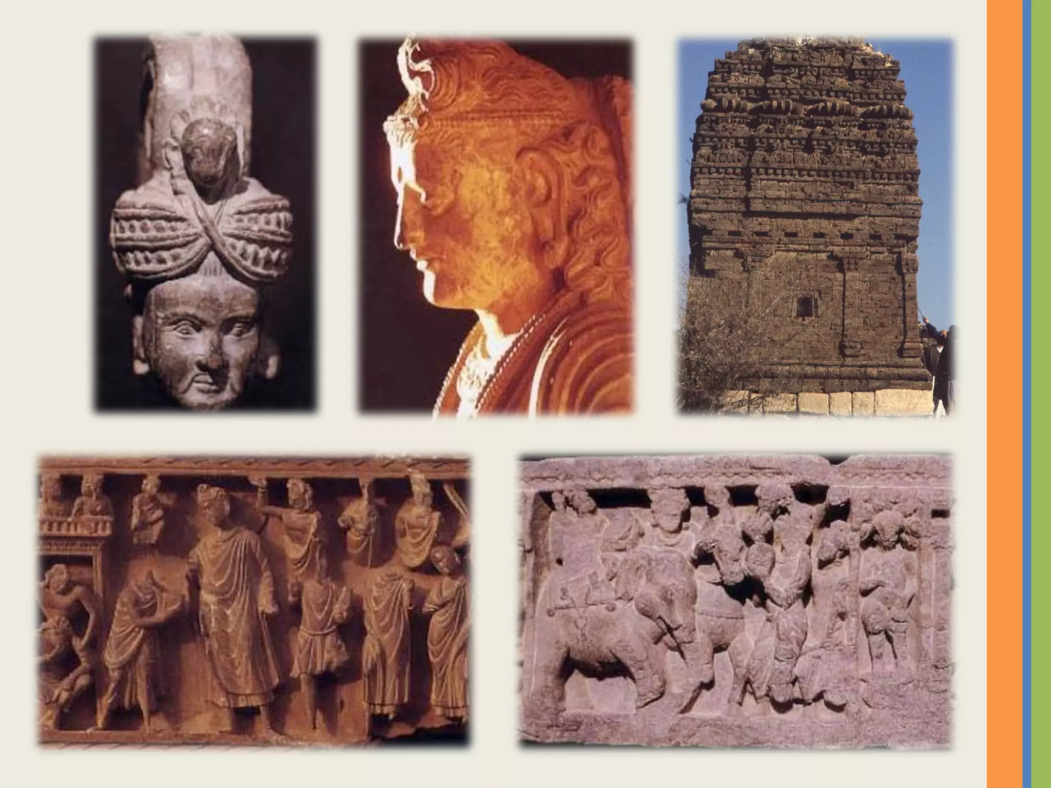 The document provides an overview of the Gandhara civilization, highlighting significant archaeological sites and artifacts such as stupas, monasteries, and sculptures. It includes mentions of locations like Sirkap, Mohra Moradu, and Dharmarajika, along with important historical figures like Ashoka. Various aspects of Gandharan art and jewelry are also noted, along with images and insights from the Taxila Museum.