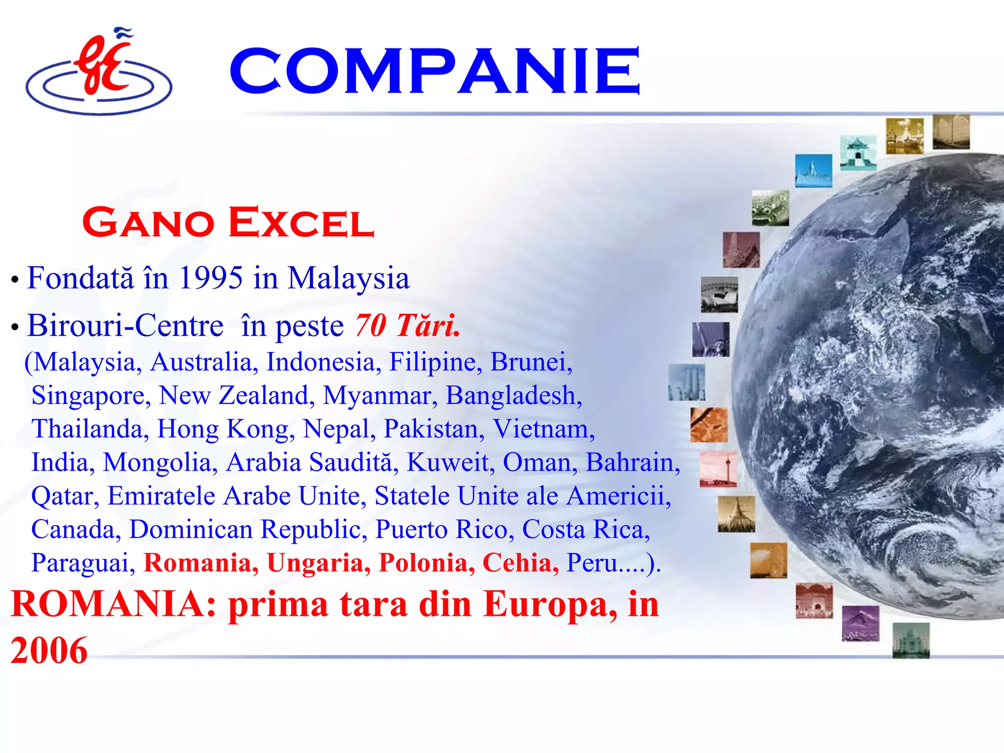 Gano Excel, fondată în 1995, operează în peste 70 de țări și se concentrează pe sănătatea și bunăstarea famililor prin produse bazate pe ganoderma lucidum, care au câștigat popularitate globală și au o cifră de afaceri de peste 500 milioane USD. Compania susține cultivarea organică și cercetarea avansată pentru a oferi suplimente nutritive menite să îmbunătățească sănătatea, incluzând efecte benefice asupra sistemului imunitar și echilibrului metabolic. Gano Excel garantează calitatea și siguranța produselor printr-o etică ridicată în afaceri și o politică de satisfacție de un an.