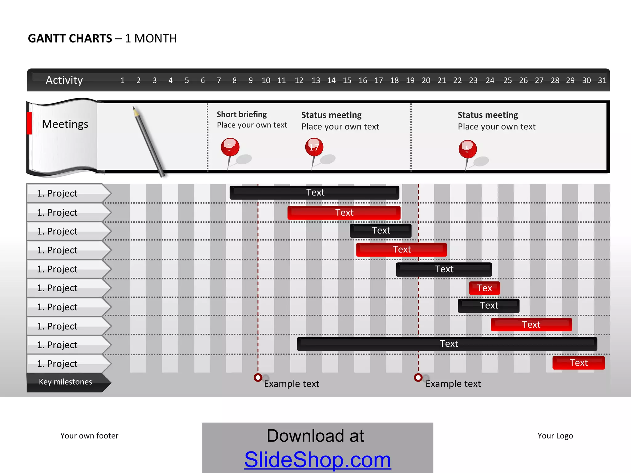 The document contains examples of Gantt charts spanning various time periods from 1 to 12 months and a year. The Gantt charts show planned project timelines with key milestones and phases. Some examples include phases within the timelines. The purpose is to provide templates that can be customized with user input for project planning and scheduling.