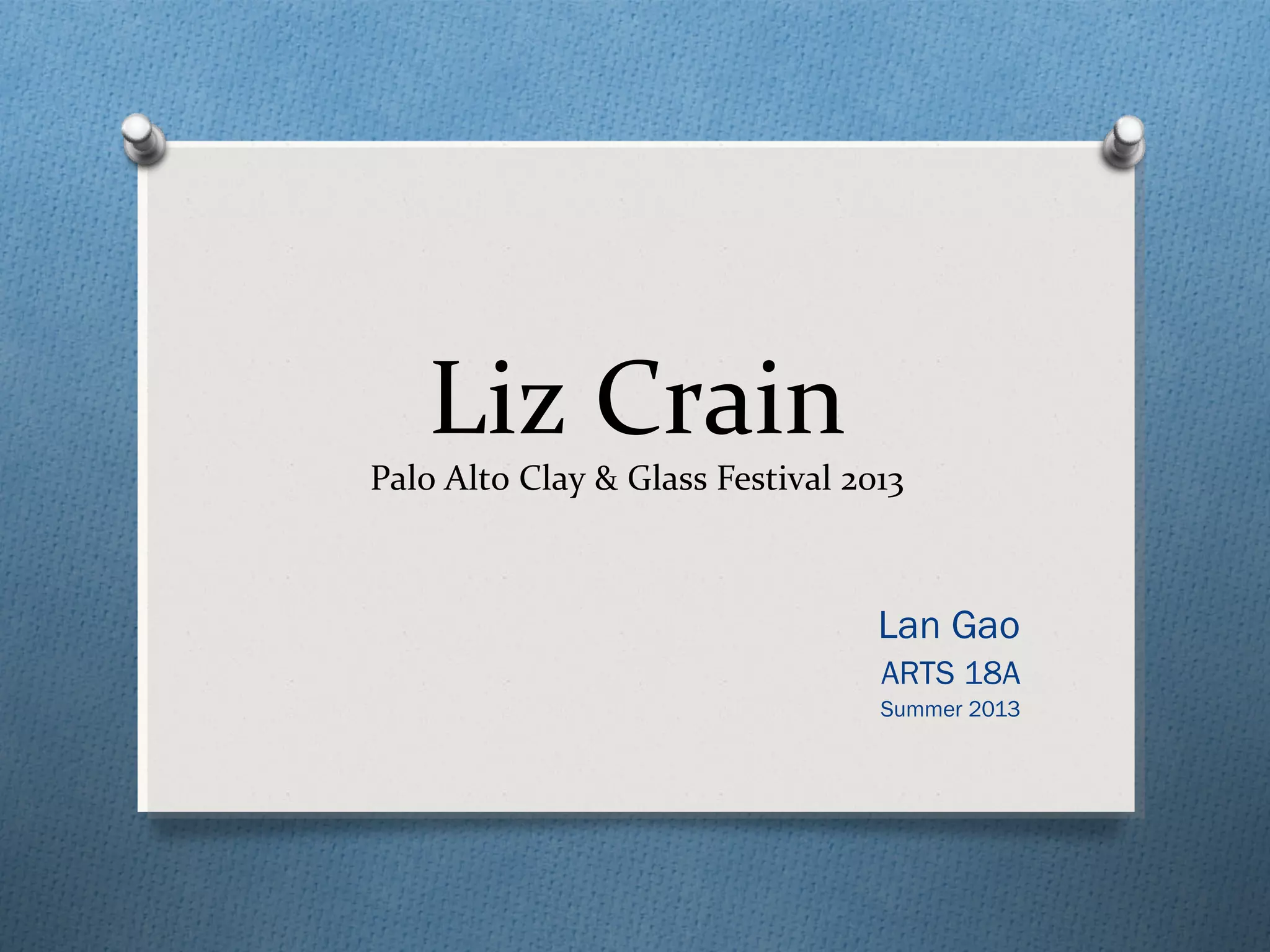 Liz Crain is a California-based ceramic artist known for her colorful hand-formed vessels and sculptures that combine functionality with artistic expression. Inspired by vintage containers, her artwork explores themes of industry and survival through unique surface treatments. She participates in various art shows and maintains an online presence through multiple platforms, showcasing her work and artistic journey.