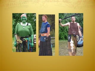 This document provides information on basic garb requirements and options for Belegarth participants. It defines minimum garb as including a tunic or tabard covering the torso, baggy pants or trousers covering the legs, and muted footwear. It also lists what garb is not and forbidden items. Basic garb options for both male and female participants are outlined. Resources for finding and making garb such as patterns, tutorials, and contacts are included.