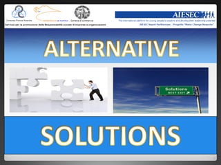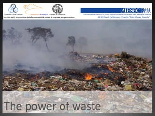 The document discusses solutions to Naples' garbage crisis. It analyzes various disposal and recycling methods used internationally and their costs. Key proposed solutions for Naples include increasing recycling (€150,000 annually), acquiring more garbage trucks (€50,000 each), using DustBots (€14,000 each), constructing an EcoPark (€800 million), and implementing plasma arc disposal (€90 million) or waste gasification (€125 million). Comprehensive solutions like mechanical biological treatment plants could cost €47 million to build.