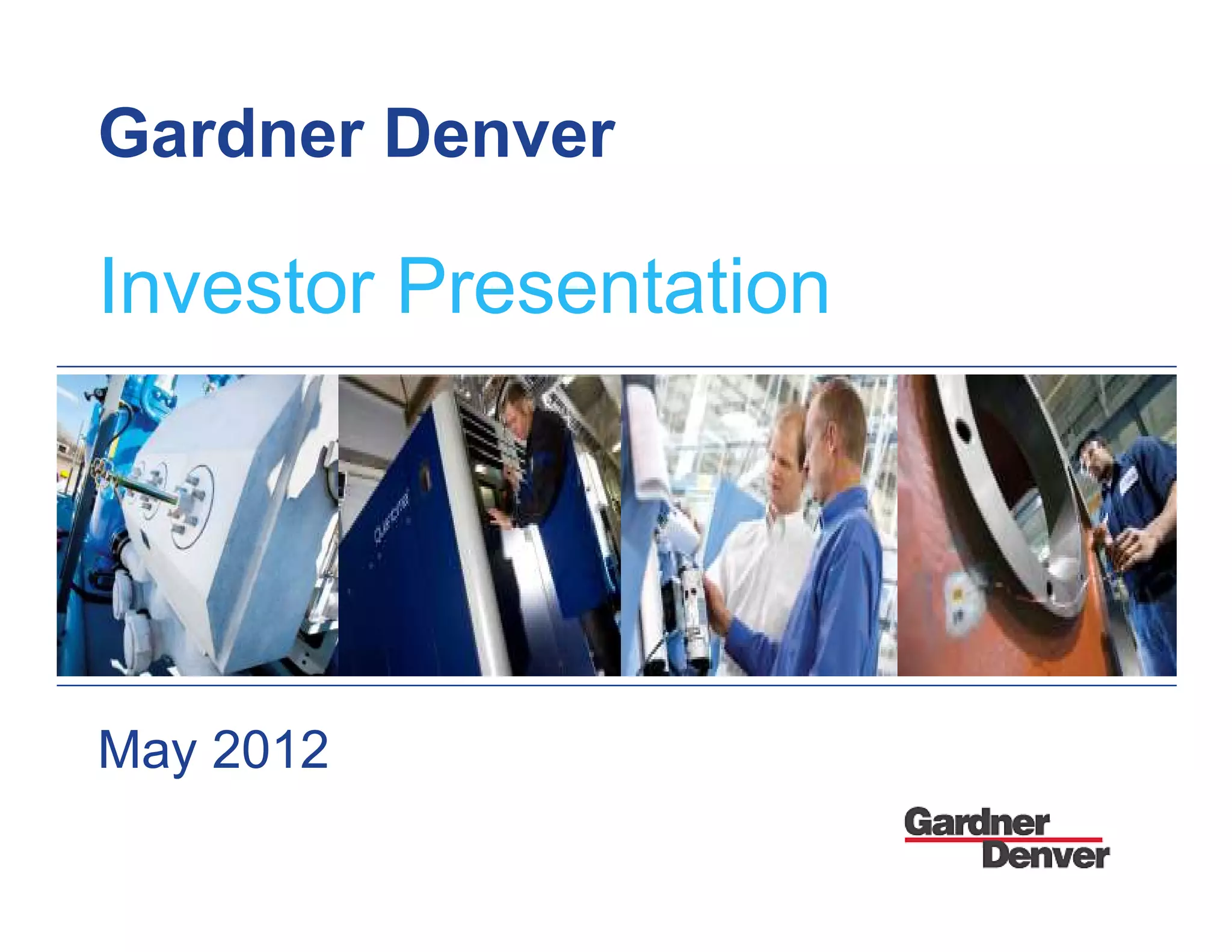 Gardner Denver is a $2.4 billion global company providing compressed air and gas, vacuum and fluid transfer technologies. It has a new, operationally focused management team driving margin expansion and earnings growth through initiatives like restructuring, productivity investments, and acquisitions. Gardner Denver is focused on transforming into a higher margin industrial company and delivering earnings growth in 2012 despite macroeconomic uncertainties.
