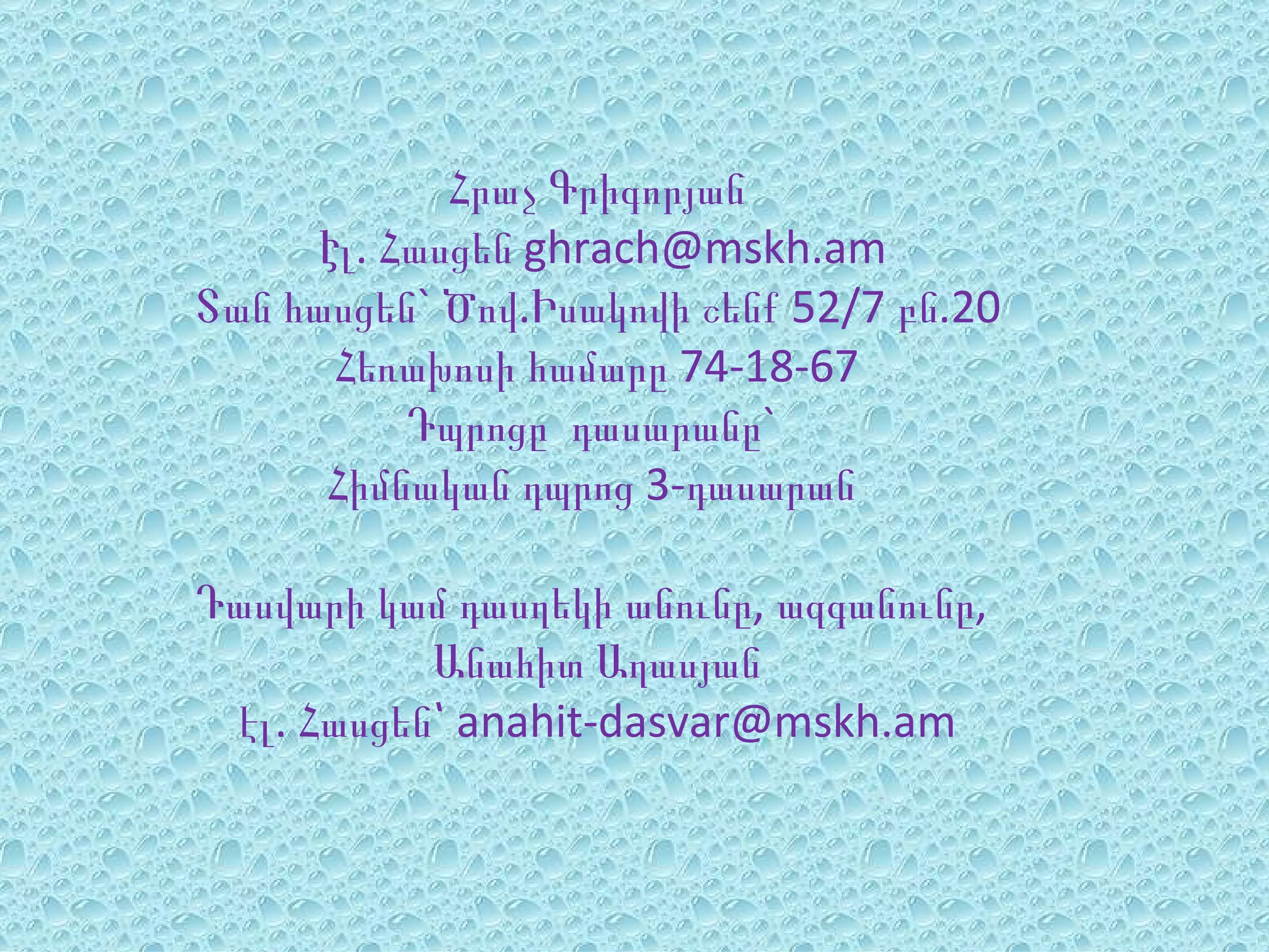 Էլ. Հասցեն ghrach@mskh.am