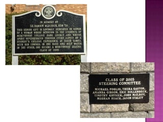 Garvey Park is a central hub on the Mercyhurst College campus. The document provides details about the history and features of the park, including the Canterbury Clock and Sister Damien Bell. It discusses viewing nature as a work of art and experiencing it everyday through aesthetic education. The writers reflect on their observations of the park and how it changes with the seasons. They connect their insights to readings by Booth, Greene, Eisner, and Wakeford about experiencing art and using one's imagination. Activities are suggested for exploring and representing nature in different subjects.
