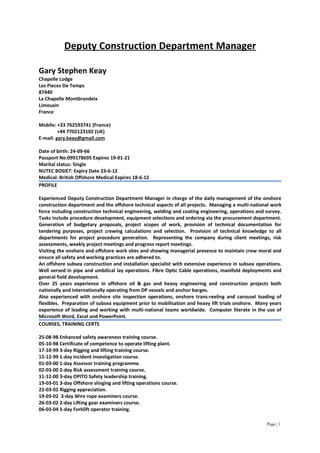 This document provides a summary of the qualifications and experience of Gary Stephen Keay, including: