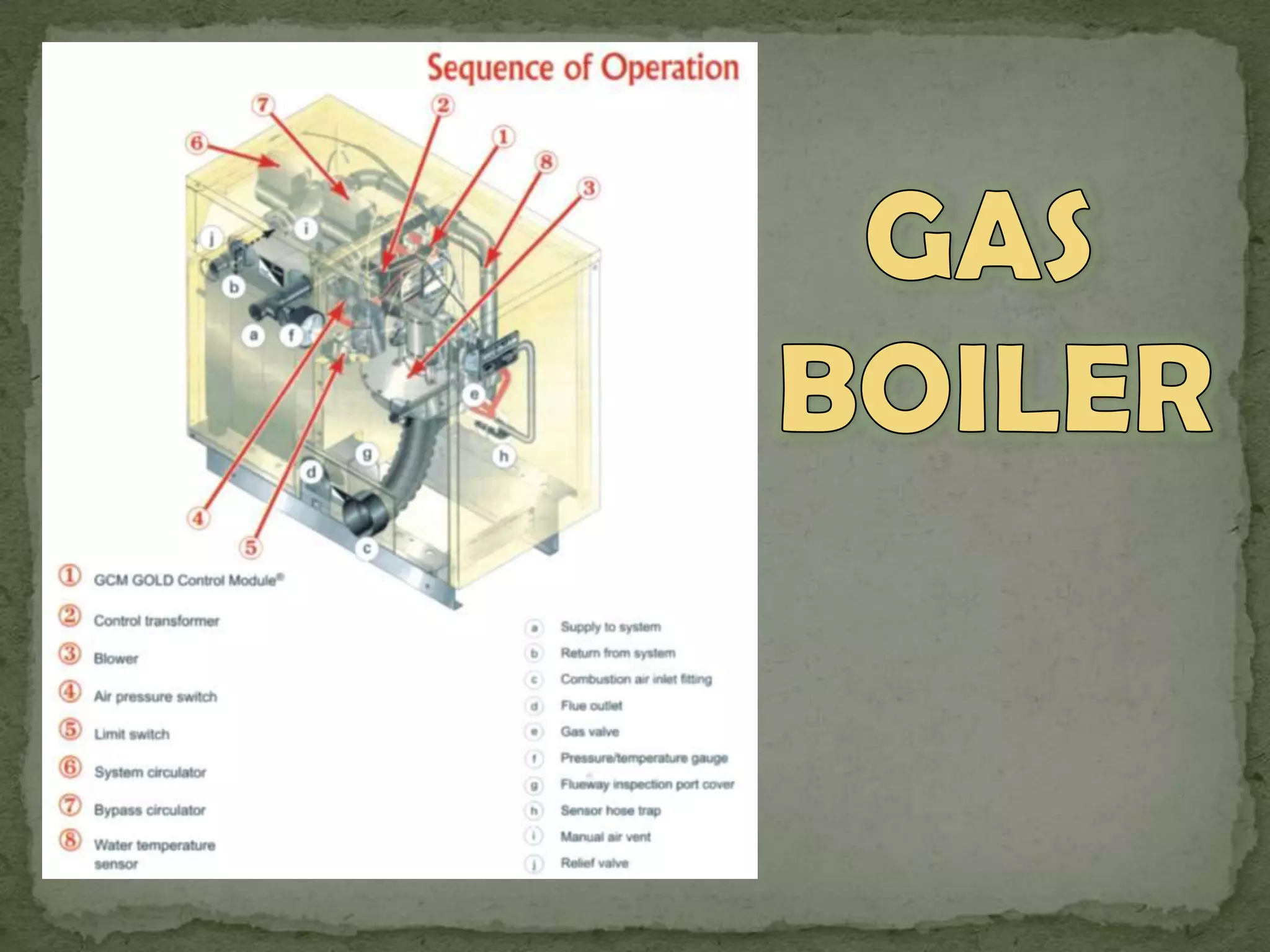 A gas boiler uses natural gas as its fuel source to heat water, similar to other boiler styles. Gas boilers can provide significant savings compared to other fuels like oil or coal. High efficiency condensing gas boilers employ additional heat exchangers to make use of extra heat from exhaust gases. Gas boilers can provide immediate hot water and controllable heating without needing to store or order fuel. They typically cost less than one thousand pounds and are compact with high energy efficiency. Common types of gas boilers include regular boilers for homes with low water pressure, combi boilers for space-saving designs, and system boilers that integrate efficiently and provide hot water on demand without a storage cylinder.