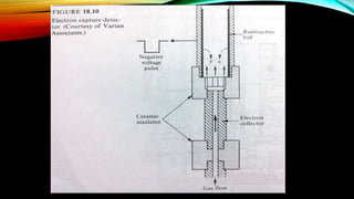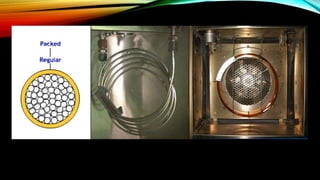 The document details gas chromatography (GC), a technique for separating and analyzing gaseous and volatile substances, which operates on principles of gas-solid (GSC) and gas-liquid chromatography (GLC). It covers the fundamental components, such as carrier gases, flow regulators, injectors, columns, and various detectors including Thermal Conductivity Detectors (TCD) and Flame Ionization Detectors (FID), highlighting their advantages and application areas. Additionally, it discusses the efficiency of columns through theoretical plates and the selection criteria for stationary phases, being relevant for numerous applications in chemical and biological analysis.