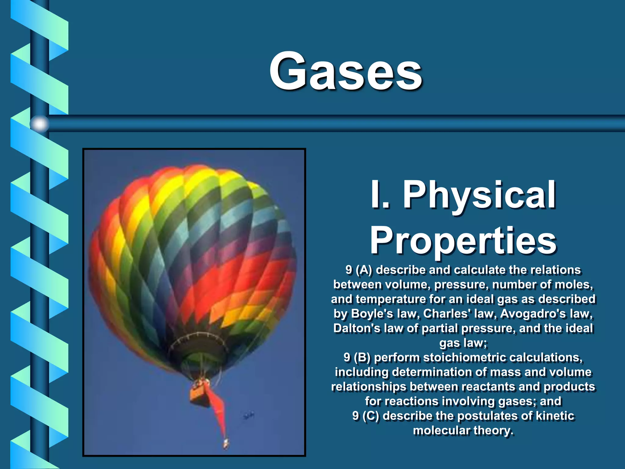 3) Several gas laws are introduced that describe the relationships between pressure, volume, temperature, and number of moles for gases including Boyle's law, Charles' law, Gay-Lussac's law, Avogadro's law, Dalton's law of partial pressures, and the ideal gas law.
