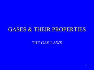 This document discusses the properties of gases and the gas laws. It explains that gases have higher energy, lower density, and flow to fill their container compared to liquids and solids. The document also describes how temperature and pressure are measured, noting that pressure is measured using a barometer that reads the height of mercury. It then explains the gas laws of Boyle's Law and Charles' Law, which describe how the volume of a gas changes with pressure and temperature respectively when other variables are held constant.