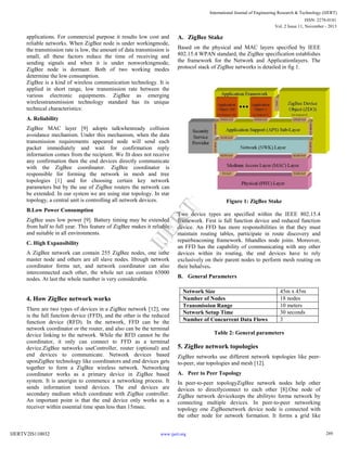 This document summarizes a research paper on a gas management and disaster system using ZigBee wireless technology. The system uses ZigBee sensors and controllers to monitor gas flow, pressure, temperature, smoke, and methane leaks. If any hazardous levels are detected, the ZigBee controller automatically shuts off the gas and triggers a warning. The system establishes a wireless network using ZigBee standards to automate safety devices and protect against gas leaks or fires. It provides both economic and health benefits for residential environments through remote monitoring capabilities.