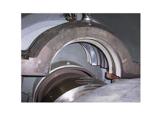 This document provides an overview of gas turbine fundamentals and components. It discusses the gas turbine course topics which include the lubrication oil system, hydraulic oil system, trip oil system and other key systems. It then summarizes the components and operation of a GE 9001E gas turbine, including descriptions of the compressor, combustion system, turbine, bearings and lubrication oil system.