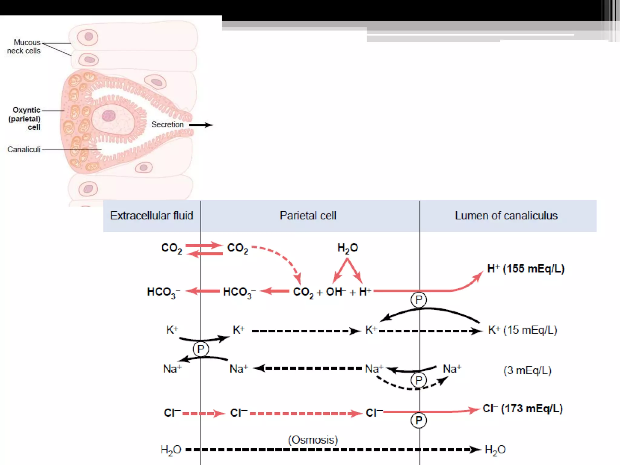 1. The anatomy and functions of the stomach, including acid secretion by parietal cells.