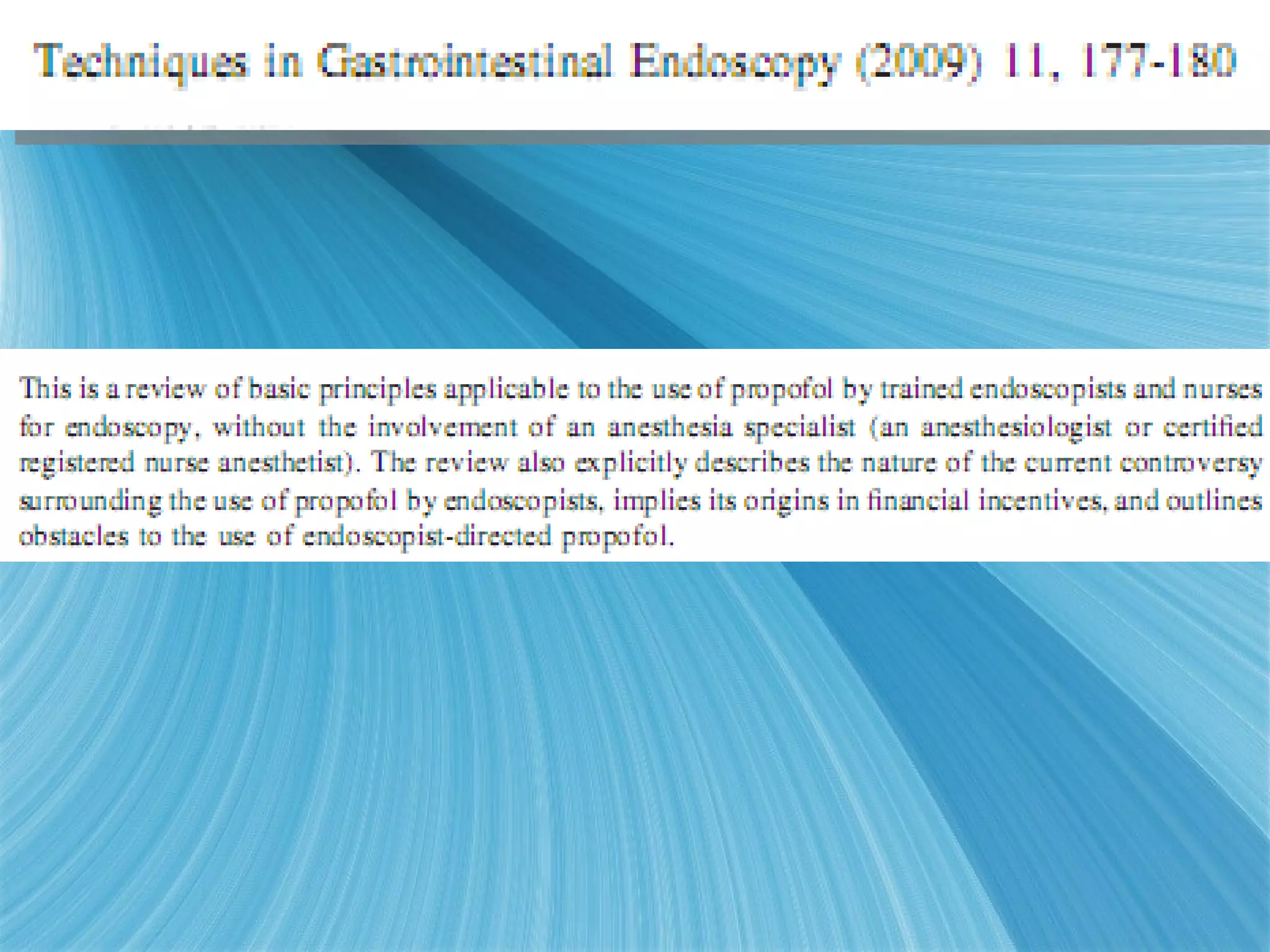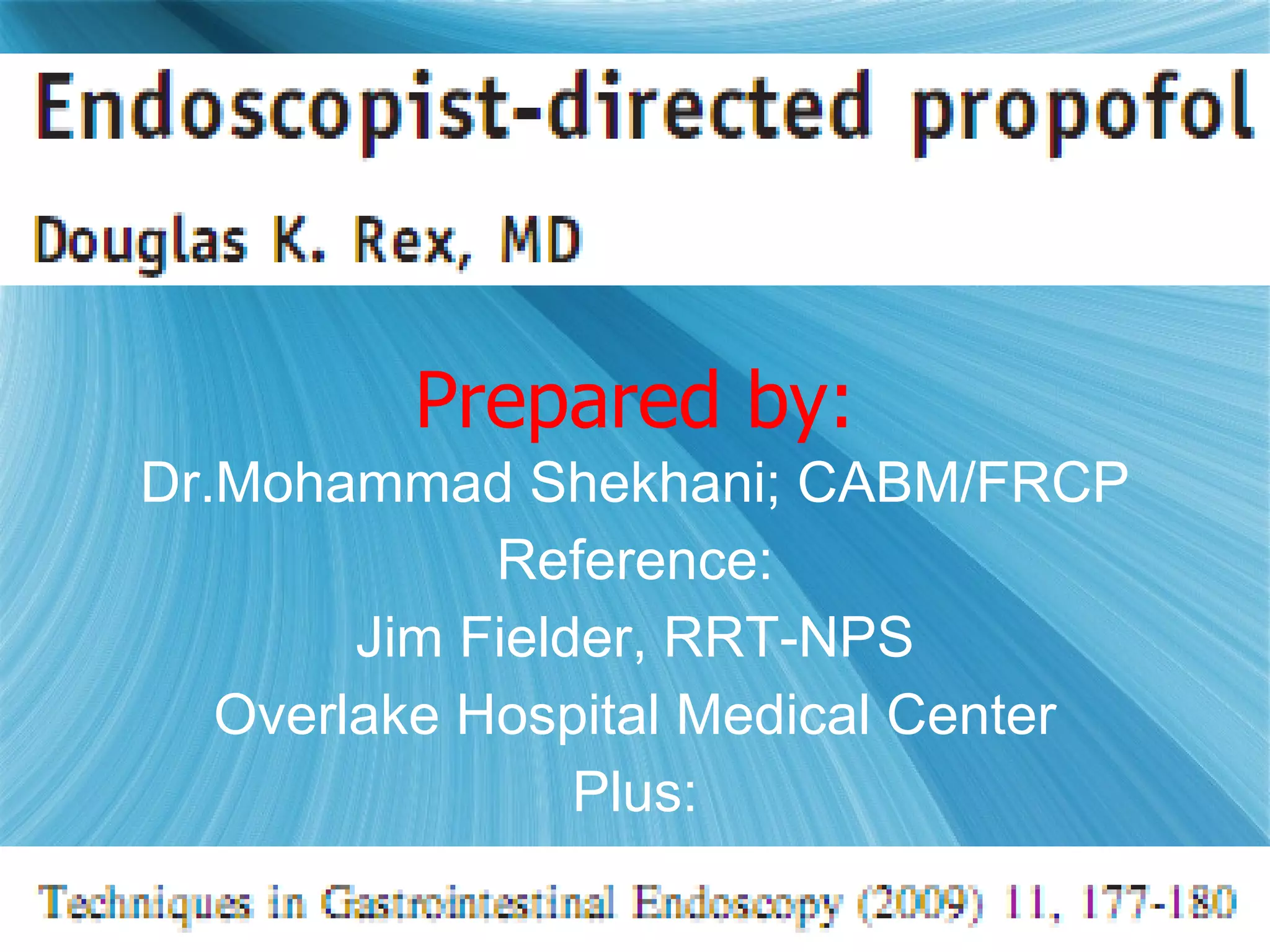 The document discusses procedural sedation and the importance of monitoring patients receiving sedation. It notes that procedural sedation aims to provide analgesia, amnesia and reduce anxiety during medical procedures. It recommends capnography as the gold standard for monitoring ventilation during sedation, as capnography can detect abnormalities in exhaled carbon dioxide levels before oxygen desaturation occurs. The document outlines various medical procedures that commonly involve procedural sedation and stresses the importance of screening patients and having proper monitoring procedures in place to protect at-risk patients during sedation.