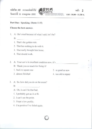 เฉลยข้ออสอบ ภาษาอังกฤษ Gat