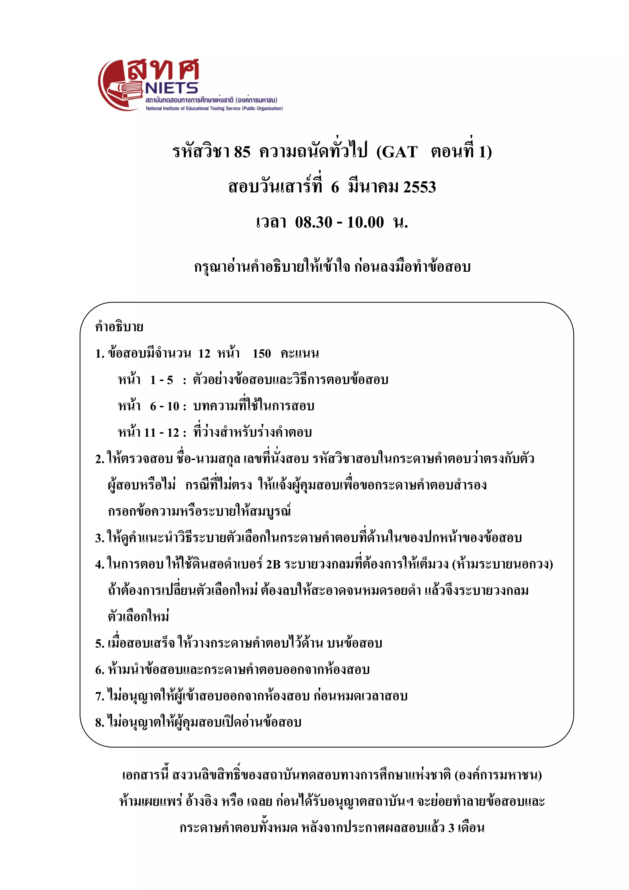 āļ§āļąāļāđāļŠāļēāļĢāđāļāđāļĩ 6 āļĄāļĩāļāļēāļāļĄ 2553 āđāļ§āļĨāļē 10.00 - 11.30 āļ.