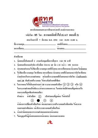 This document provides instructions and information for an English proficiency exam. It states that the exam will take place on March 7th from 10:30-12:00. It provides the student's name, seat number, test location and room number. It explains that the exam has two parts and is out of 150 points total. It provides instructions on how to fill in personal information and answers on the answer sheet using a #2 pencil. It reminds students not to leave the testing room before time is up.