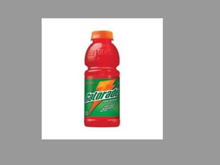 Gatorade was created in 1965 by researchers at the University of Florida, including Dr. Robert Cade, to help hydrate football players in hot weather. It was originally called "Cade's Cola" but was later renamed Gatorade. The first flavor was lemon-lime. Gatorade provides hydration and energy during exercise but can be unhealthy if consumed excessively outside of physical activity.