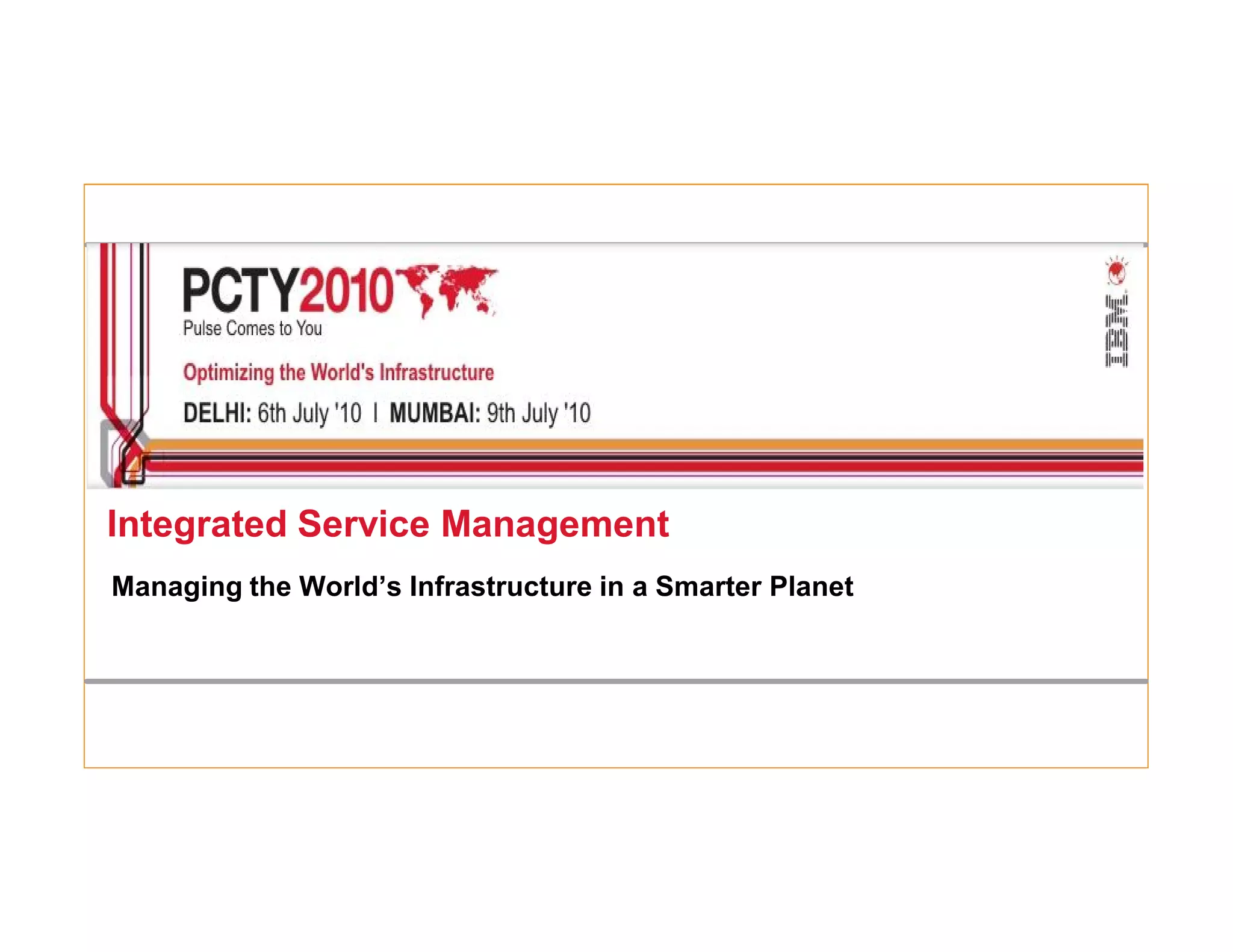 Integrated Service Management provides visibility, control, and automation across business infrastructure to enable the delivery of innovative services. It offers service architectures tailored by industry and across the service lifecycle. Key benefits include improved scalability and flexibility, reduced costs, increased compliance and security, and optimized productivity through automated management. Customers in various industries like mining, insurance, telecom have leveraged IBM's solutions to significantly reduce expenses, drive innovation, comply with regulations, and enhance business efficiency.
