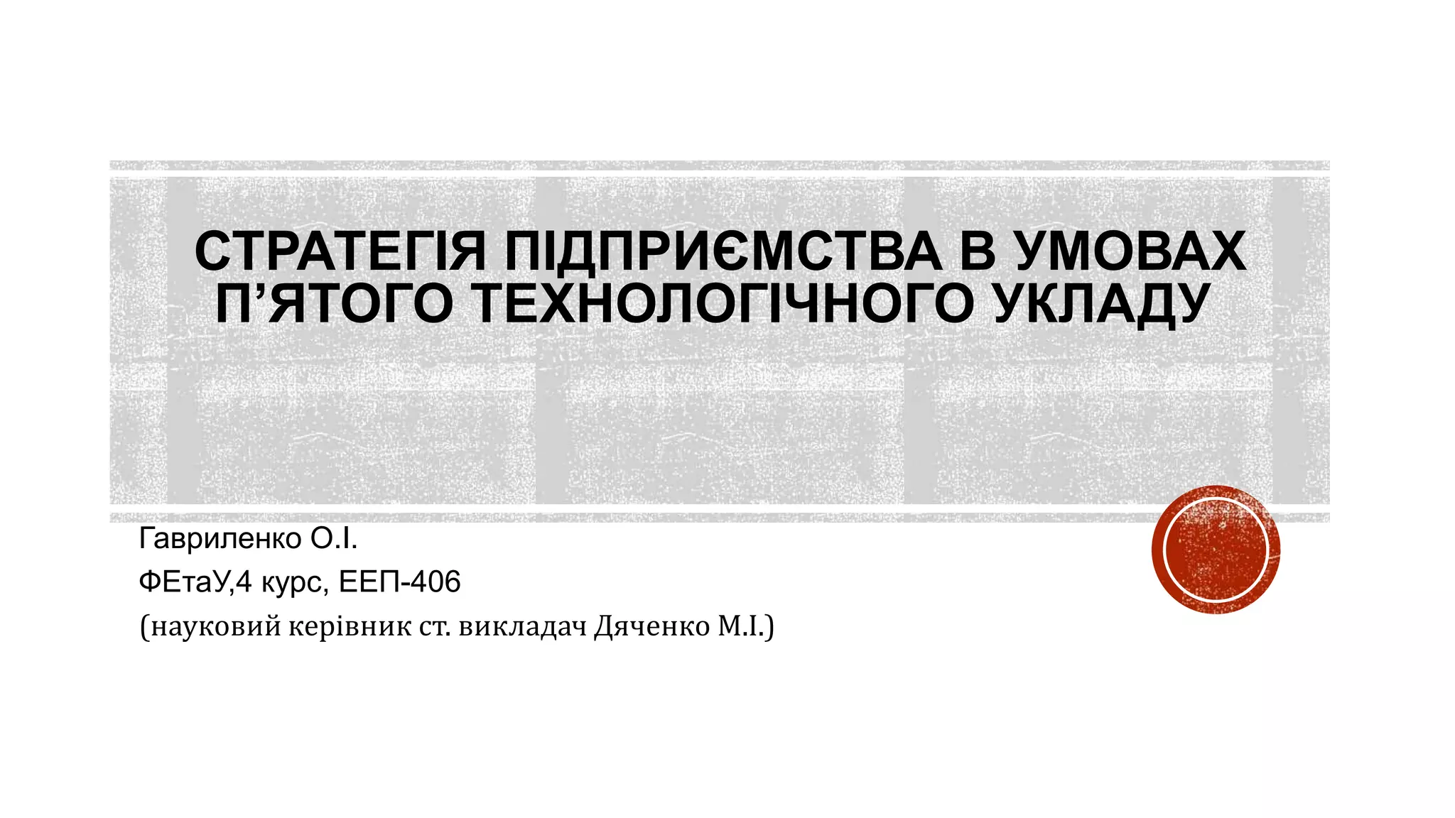 П’ЯТОГО ТЕХНОЛОГІЧНОГО УКЛАДУ